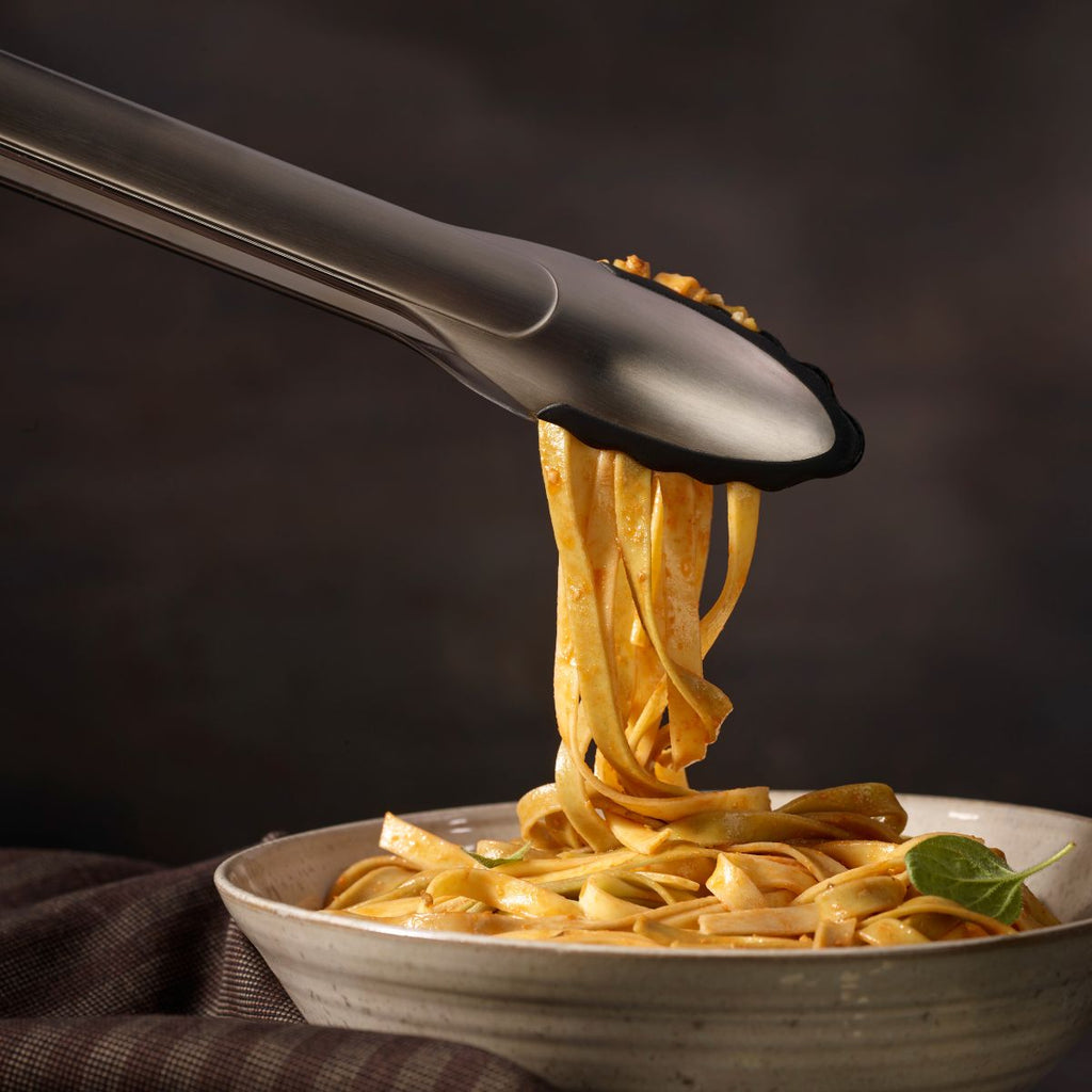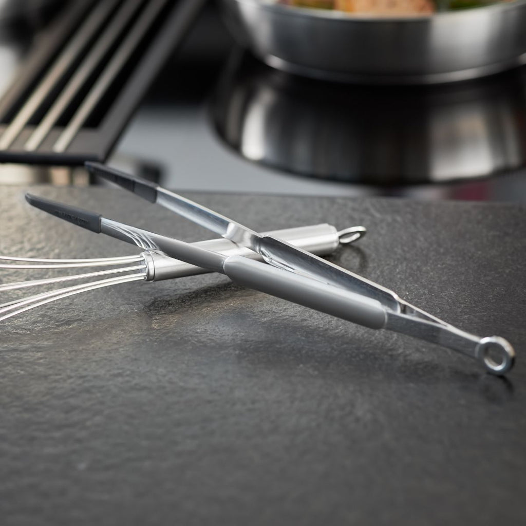 Kitchen tongs are very practical for everyday use in the kitchen. They allow you to turn food in a pan, serve salad or pick up ice, as well as for use in baking.