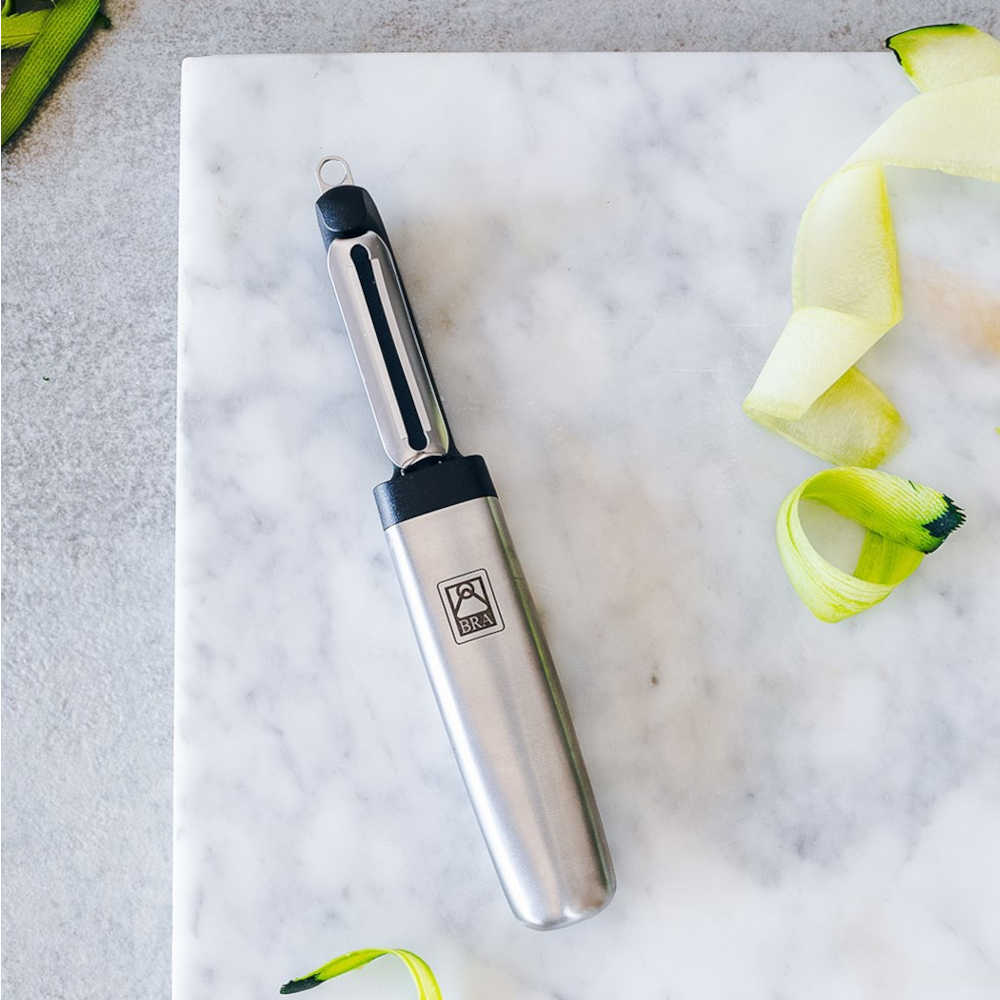 With the Signature Bra Smooth I Peeler you can finely peel apples, kiwis, or pears comfortably, efficiently, and effortlessly. Its sharp smooth blade made of 18/10 stainless steel offers great precision in use. The ergonomic handle is sturdy and provides a very comfortable and secure grip. Its elegant satin finish makes it ideal for any kitchen.