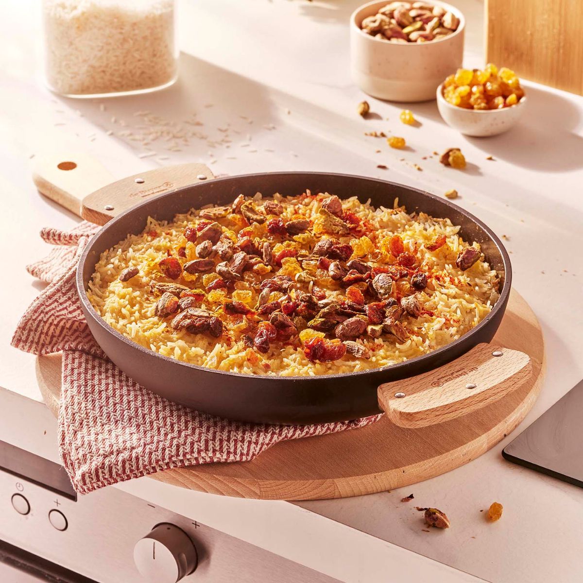 Ceranoa is the range of ceramic frying pans from the French brand. Robust and highly resistant to deformation, its ceramic coating offers great durability and excellent non-stick properties. Its aluminum construction, an excellent heat conductor, allows it to heat up quickly and distribute heat evenly, so that the food cooks to perfection. To this, add the functionality of the interchangeable handle and grip system, which allows you to use it as a frying pan, as a paella pan or as a Shallow Casserole, as needed.