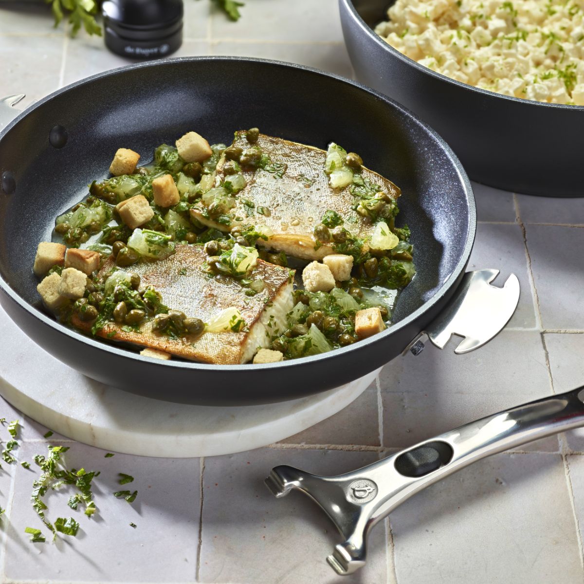 Designed for cooking on medium-low heat, the Ceranoa ceramic pan offers great performance. With it, you can cook stews over low heat, griddle meats and fish, reduce sauces, sauté vegetables, or gently brown all kinds of foods, and it will care like no other for the most delicate foods, such as white fish, legumes, vegetables, or eggs. Suitable for all cooktops, including induction, you can take it to the oven to give your dishes a wonderful finish.