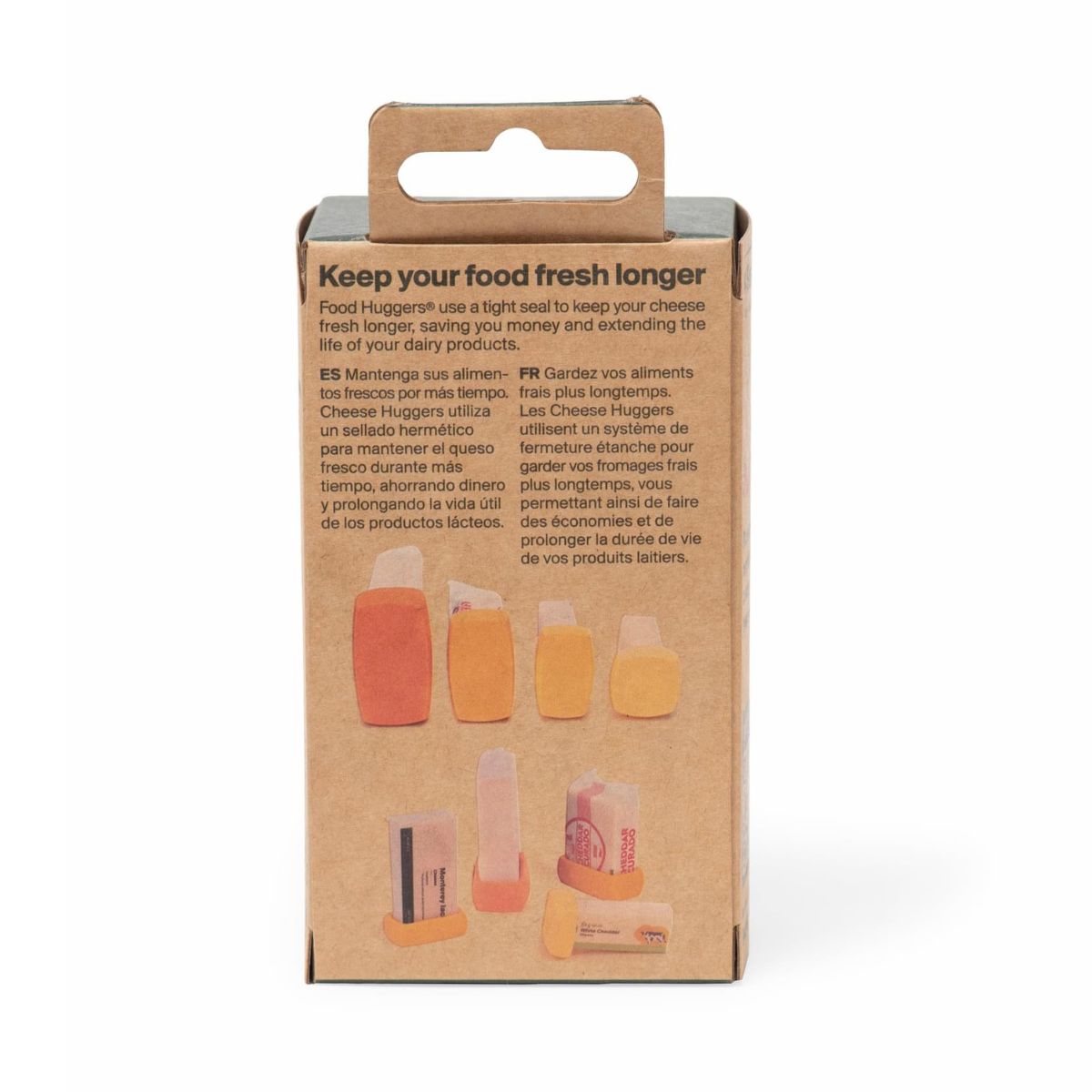 With the Set of 4 silicone lids for cheese and butter Food Huggers you can forget about cling film or aluminium foil to keep your cheeses fresh. The 4 covers in this set are the most sustainable and functional alternative to preserve your cheeses or butter for longer, without resorting to plastic. Made of 100% platinum silicone, free from BPA, lead and phthalates, the 4 lids fit perfectly to different sizes and shapes of cheese or butter blocks. Practical, ingenious, safe and reusable – they have it all!