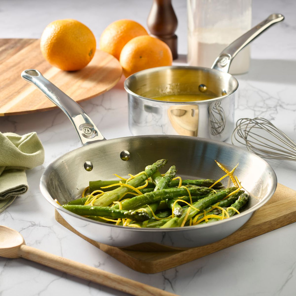 It goes without saying that it’s a visually stunning pan, featuring a cast stainless steel handle with a stylish French-style curve and heat stop, so you can cook safely and comfortably.