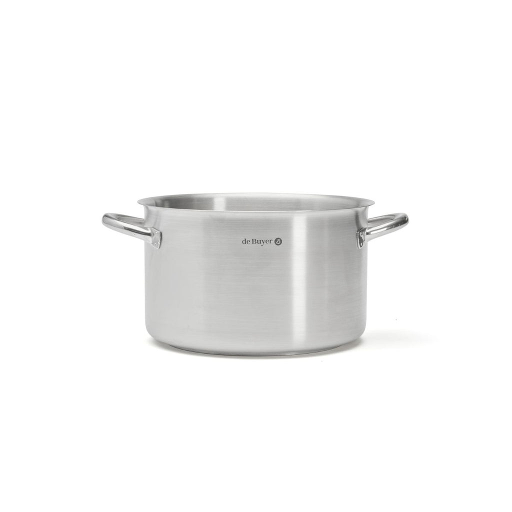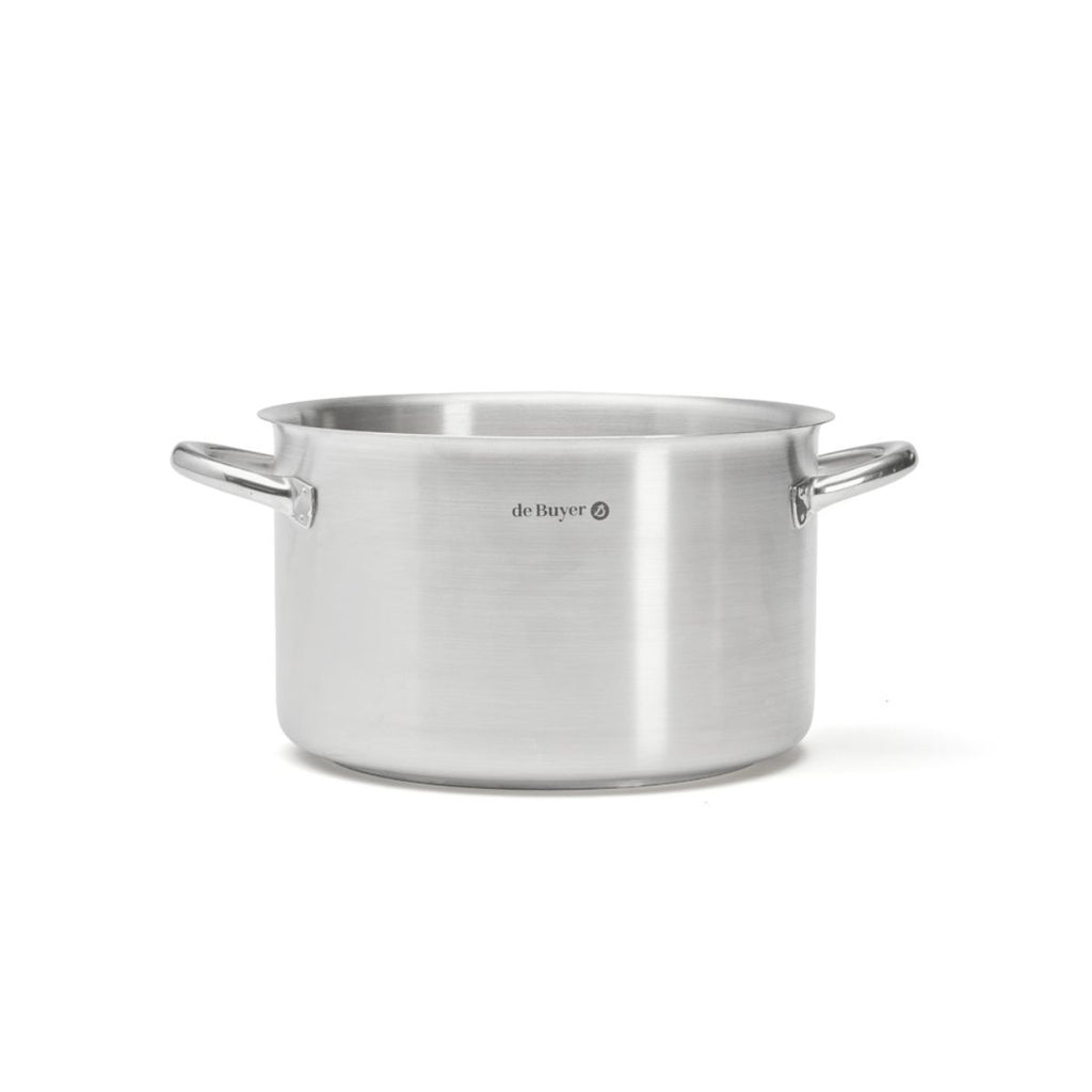 Olla de acero inoxidable 18/10 con acabado satinado y base difusora del calor, apta para todas las cocinas, incluida la inducción.