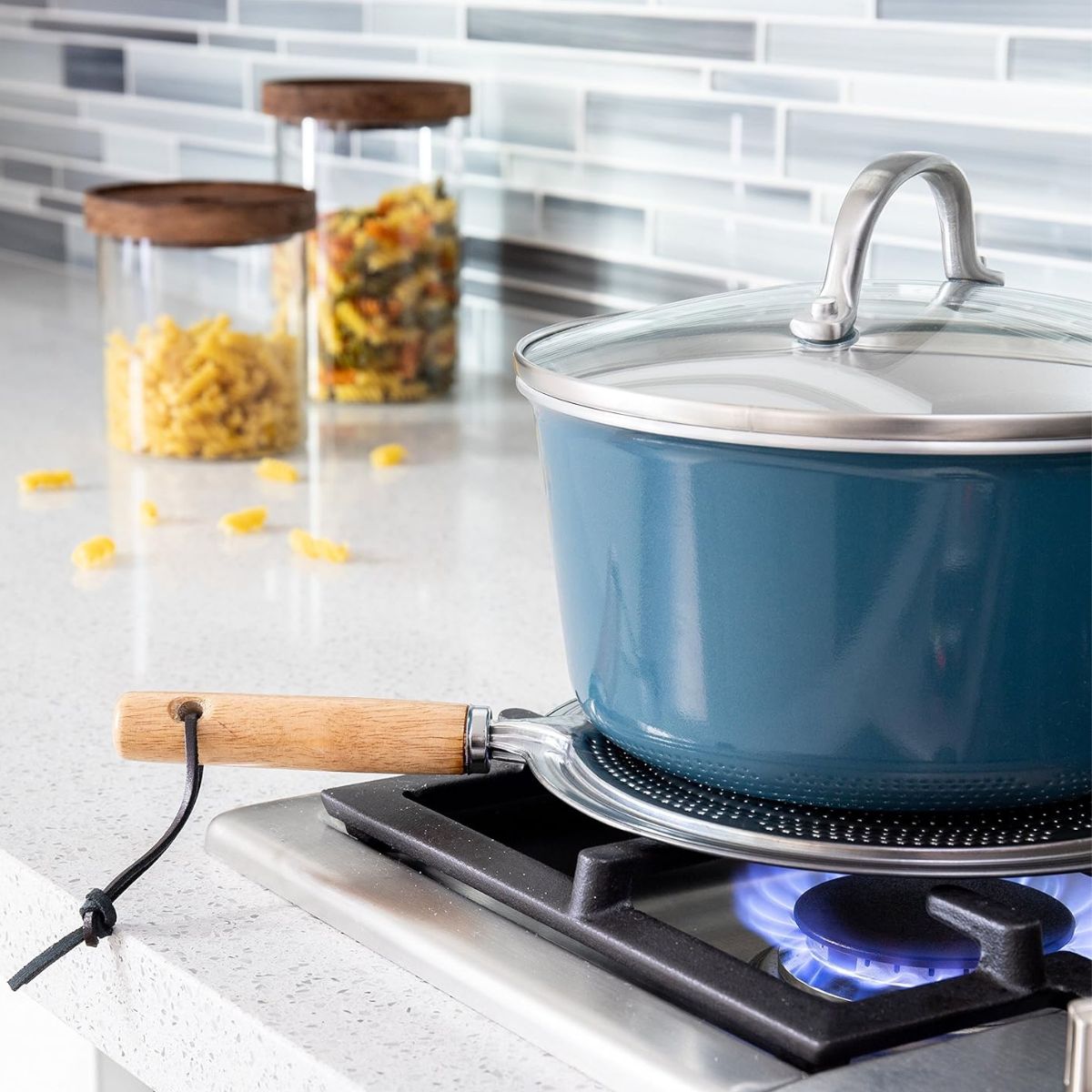 This heat diffuser features a wooden handle and a loop on the end so you can hang it up easily. It’s suitable for cookware with a diameter of up to 21 cm.