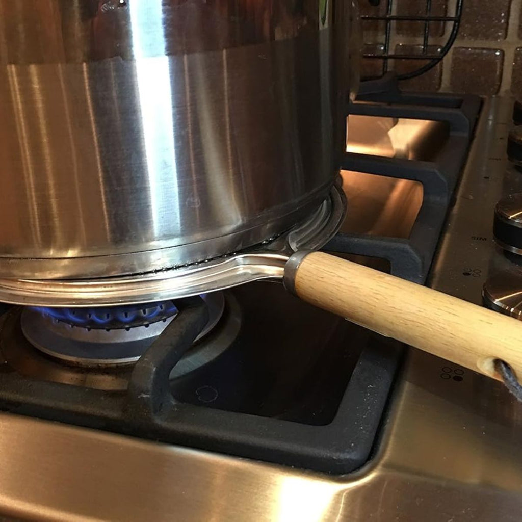 1) As a diffuser: place it between the heat source and your pot or pan to evenly spread heat across the whole base, reaching the furthest edges and ensuring a uniform temperature.