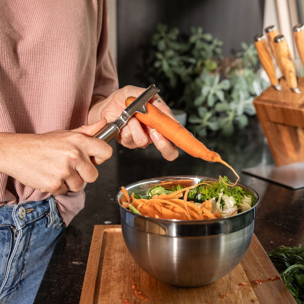 What are you waiting for to get your Rösle stainless steel swivel peeler for right-handers? With it, you’ll peel fruits and vegetables quickly and safely – no more worrying about accidental nicks on your fingers.
