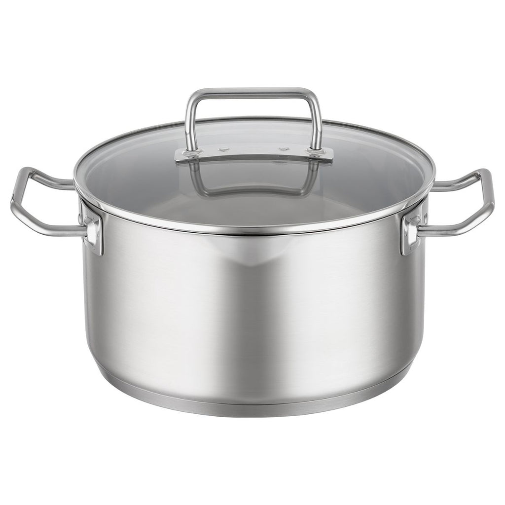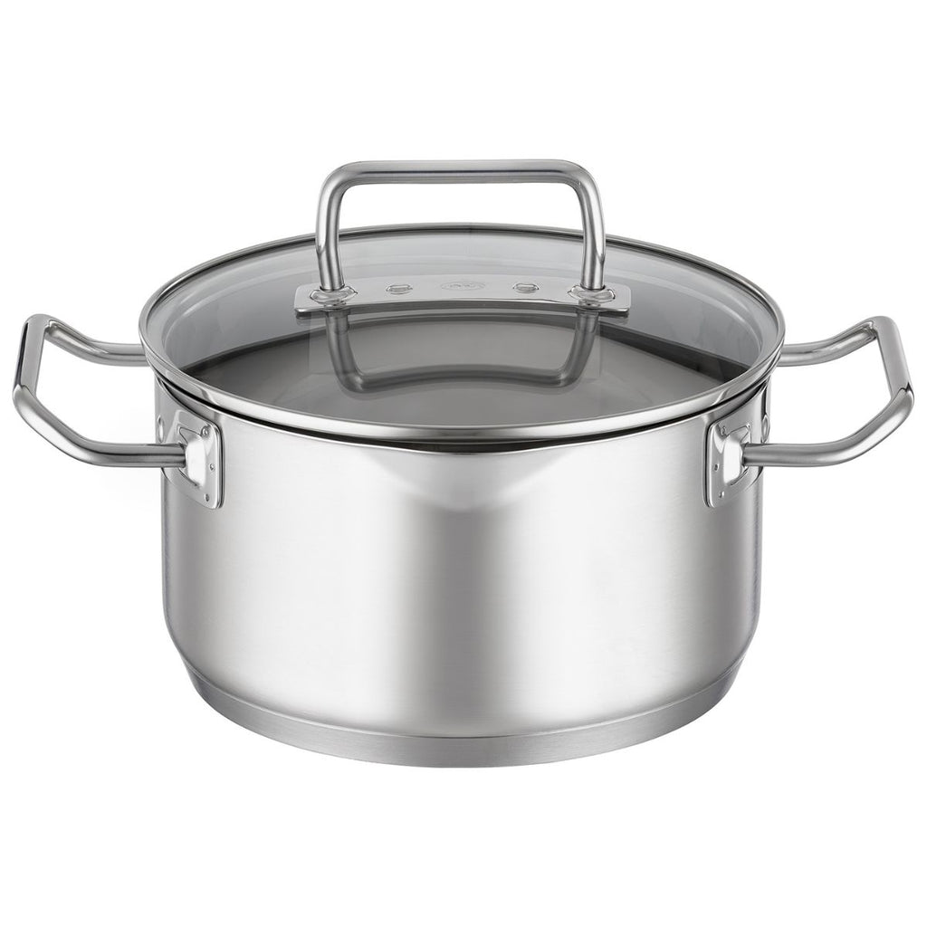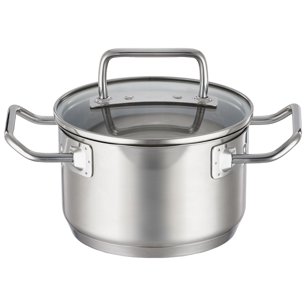 • 4-piece cookware set made of 18/10 stainless steel with glass lids.
