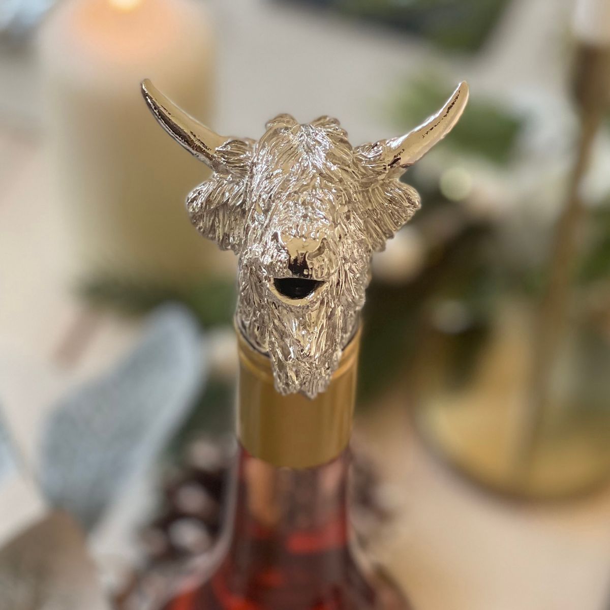 The pourer comes in a sleek black box, making it a stylish gift. Without a doubt, its most striking feature is the original design, which faithfully reproduces the head of the Highland cow or the red deer—two of Scotland’s most iconic animals.