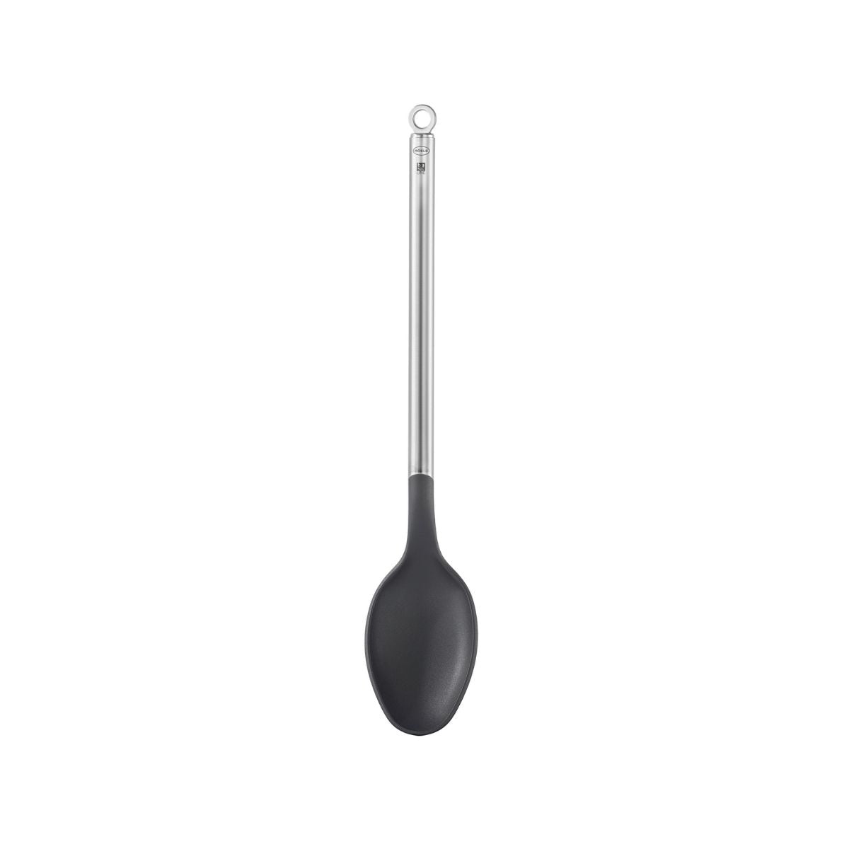 The Rösle Basic Line Nylon Serving Spoon with Stainless Steel Handle is the perfect tool for serving anything from hot stews to cold rice salads. Thanks to its long stainless steel handle, you can reach the bottom of any pot easily, and its nylon head offers complete protection against scratches and scuffs. You can use this spoon on all your cookware – including non-stick and ceramic – without damaging them.