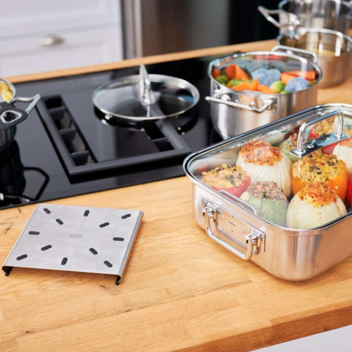 The Rösle stainless steel trivet is an essential piece for any kitchen, as it allows you to place hot pots, pans, or skillets on the table completely safely. This trivet protects the surface of your tables and, at the same time, prevents you from burning or damaging your tablecloths.