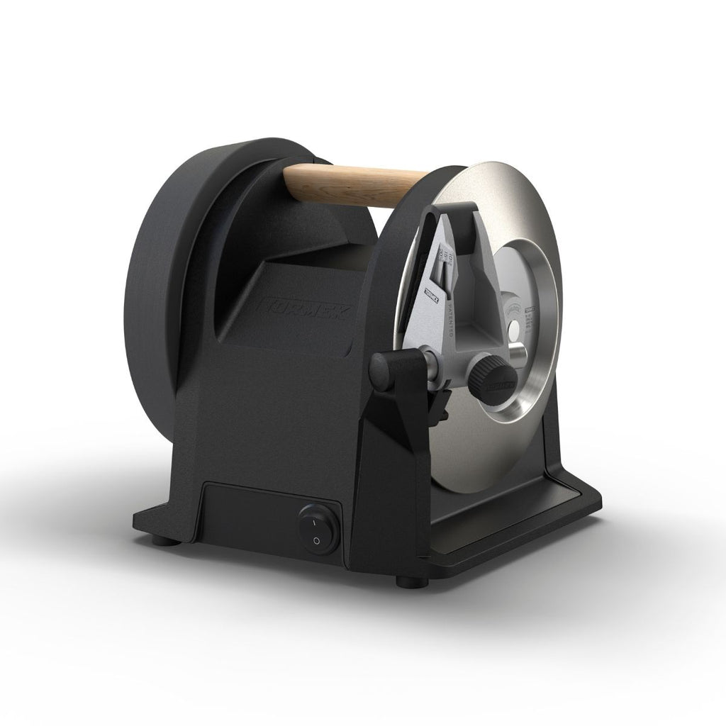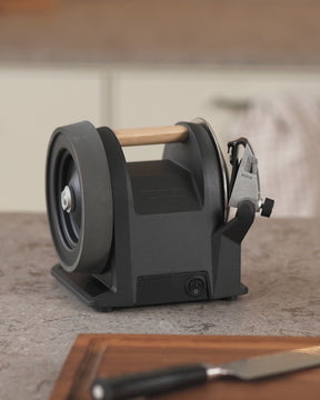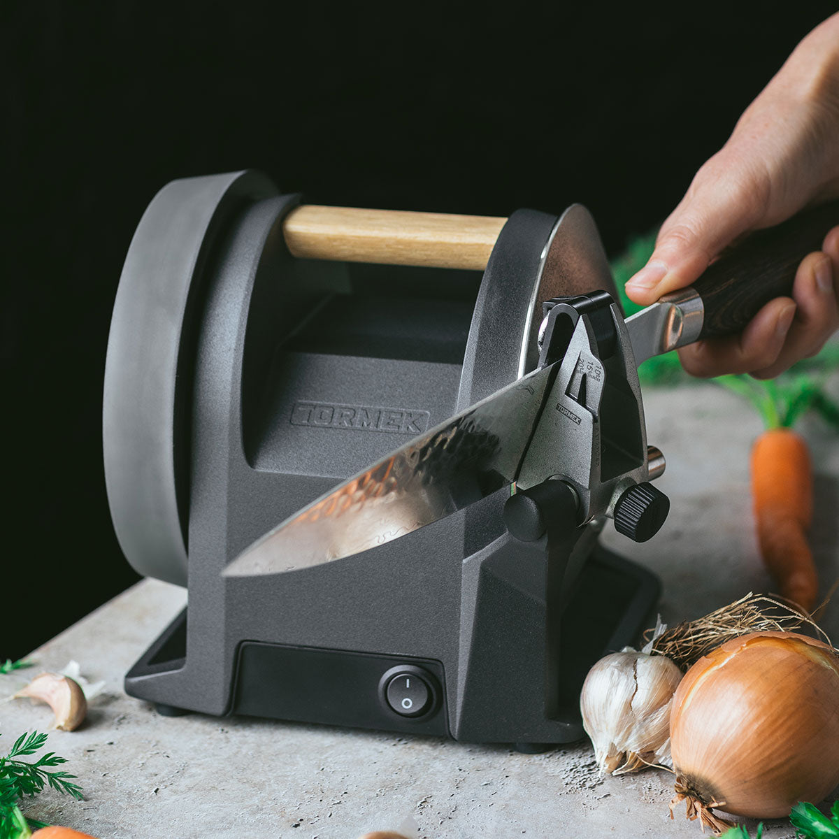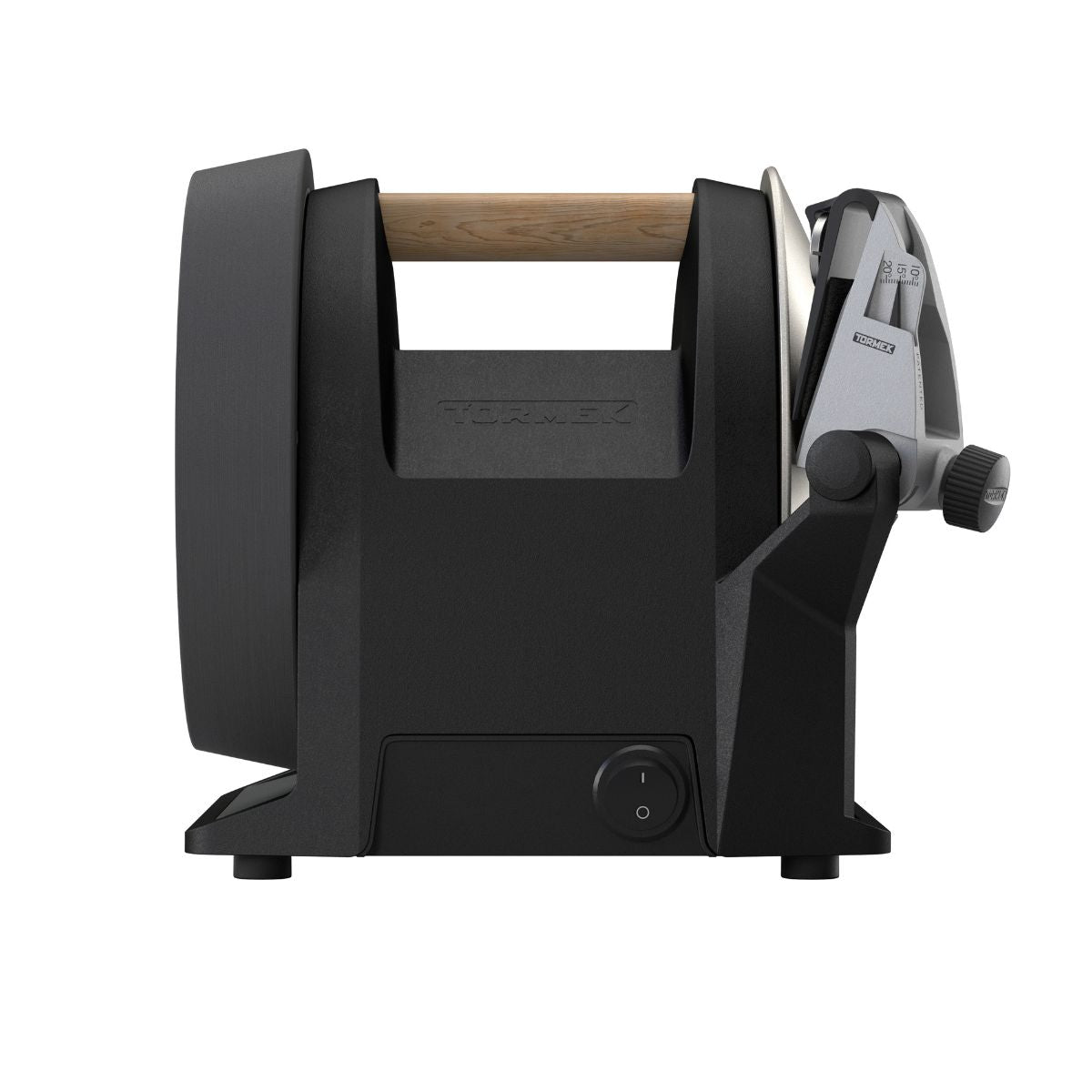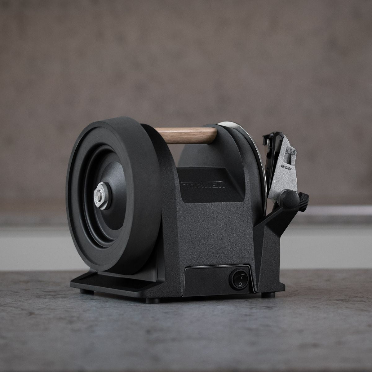 Because your knives are your best tools, they deserve the best sharpening. The Tormek T-1 Knife Sharpener guarantees professional sharpening at home. This electric sharpening machine, developed and manufactured in Sweden, is designed for domestic use. Its simple operation, high efficiency, and excellent durability mean your kitchen knives will be perfectly sharpened, ready to cut, peel, fillet, carve or chop as if they were brand new.