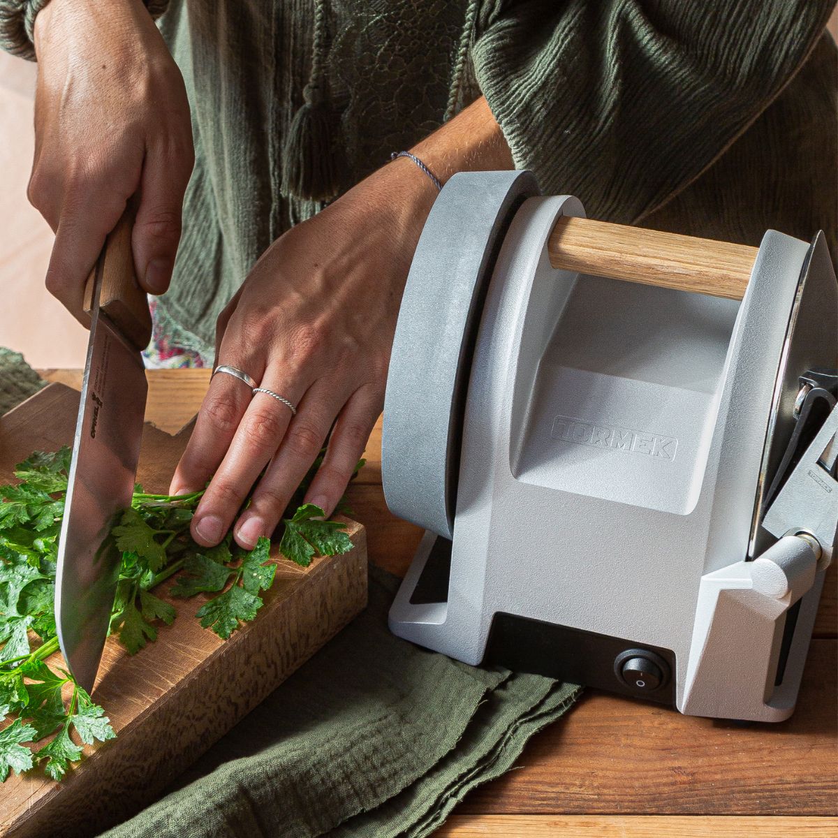 Arriving in Spain exclusively at Claudia&Julia, the Tormek T-1 Knife Sharpener is the electric machine that lets you sharpen your kitchen knives at home with a professional edge.