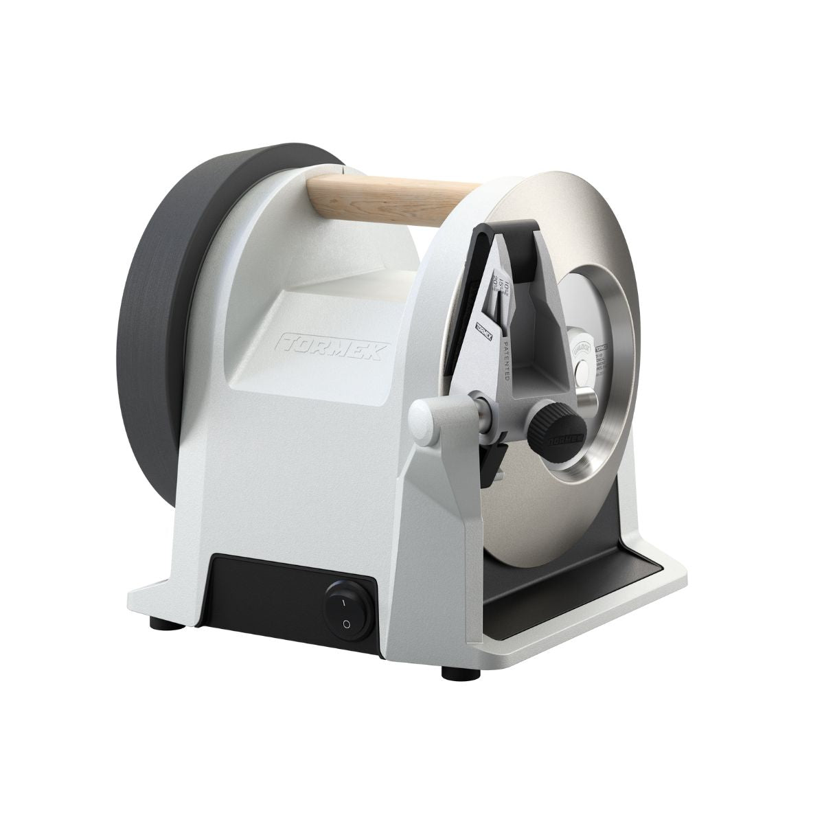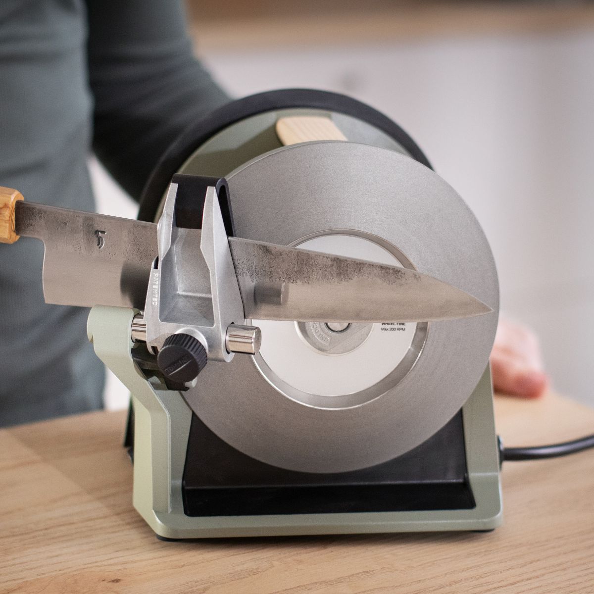 • The fine-grit diamond sharpening wheel is perfect for professional sharpening. The low-speed rotation removes minimal steel and prevents overheating of the edge, preserving the blade's temper and keeping it sharper for longer.