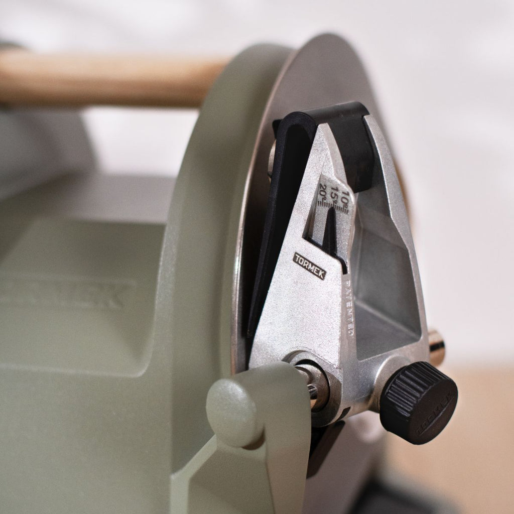 • The Tormek T-1 was developed using the same method as sharpening systems for commercial kitchens, but adapted and approved for home use. It quickly and easily sharpens the entire bevel at the exact angle set using the patented guide.