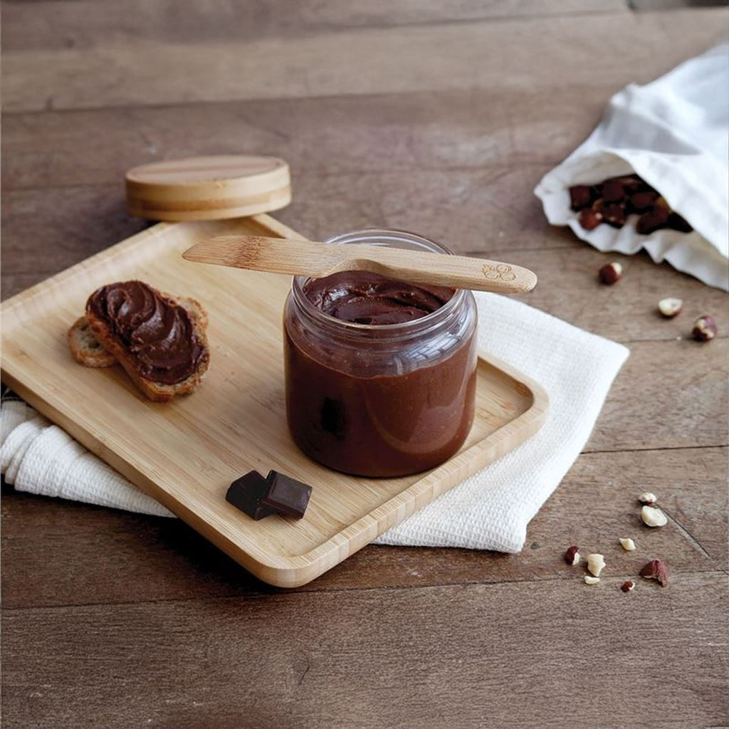 Ce kit est idéal pour préparer une grande variété de tartinables maison —sucrés comme salés— grâce à son pot en verre hermétique et sa spatule en bambou qui facilitent à la fois la préparation, la conservation et le service.