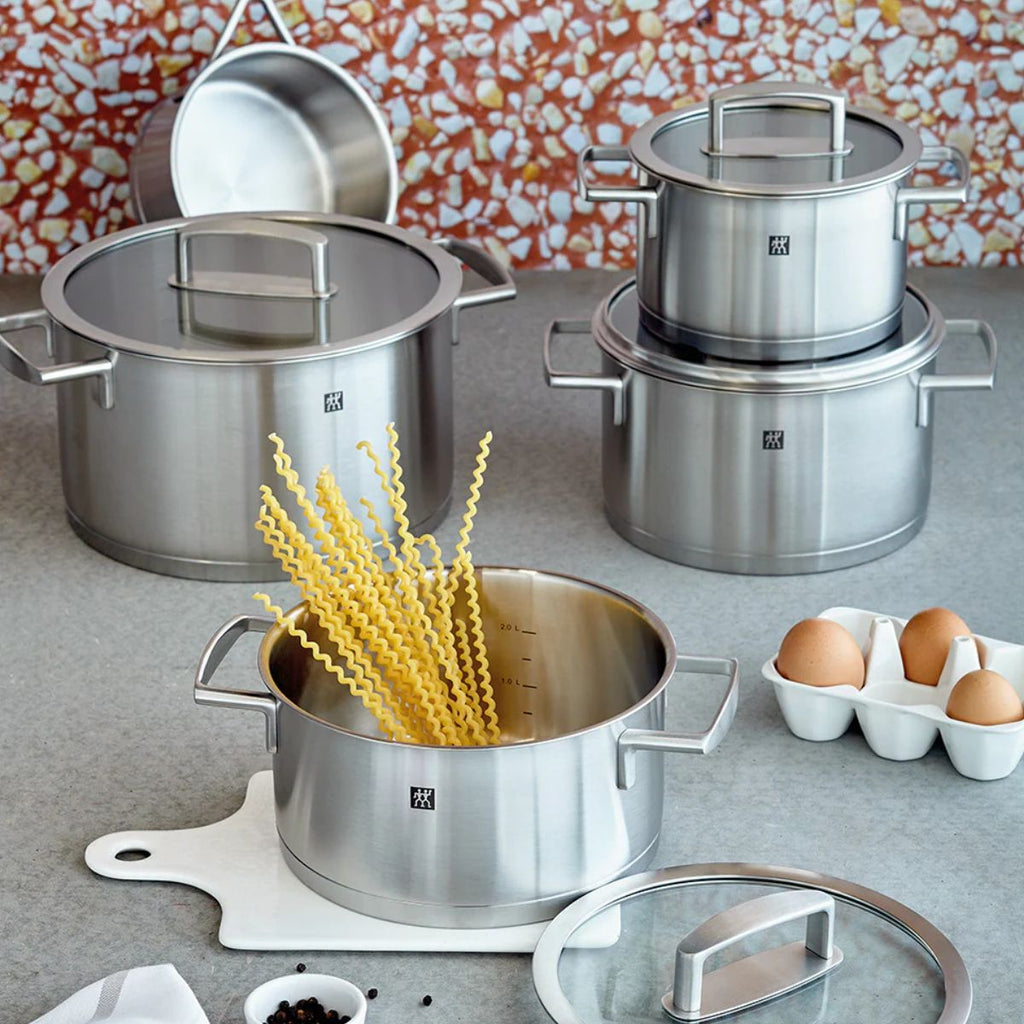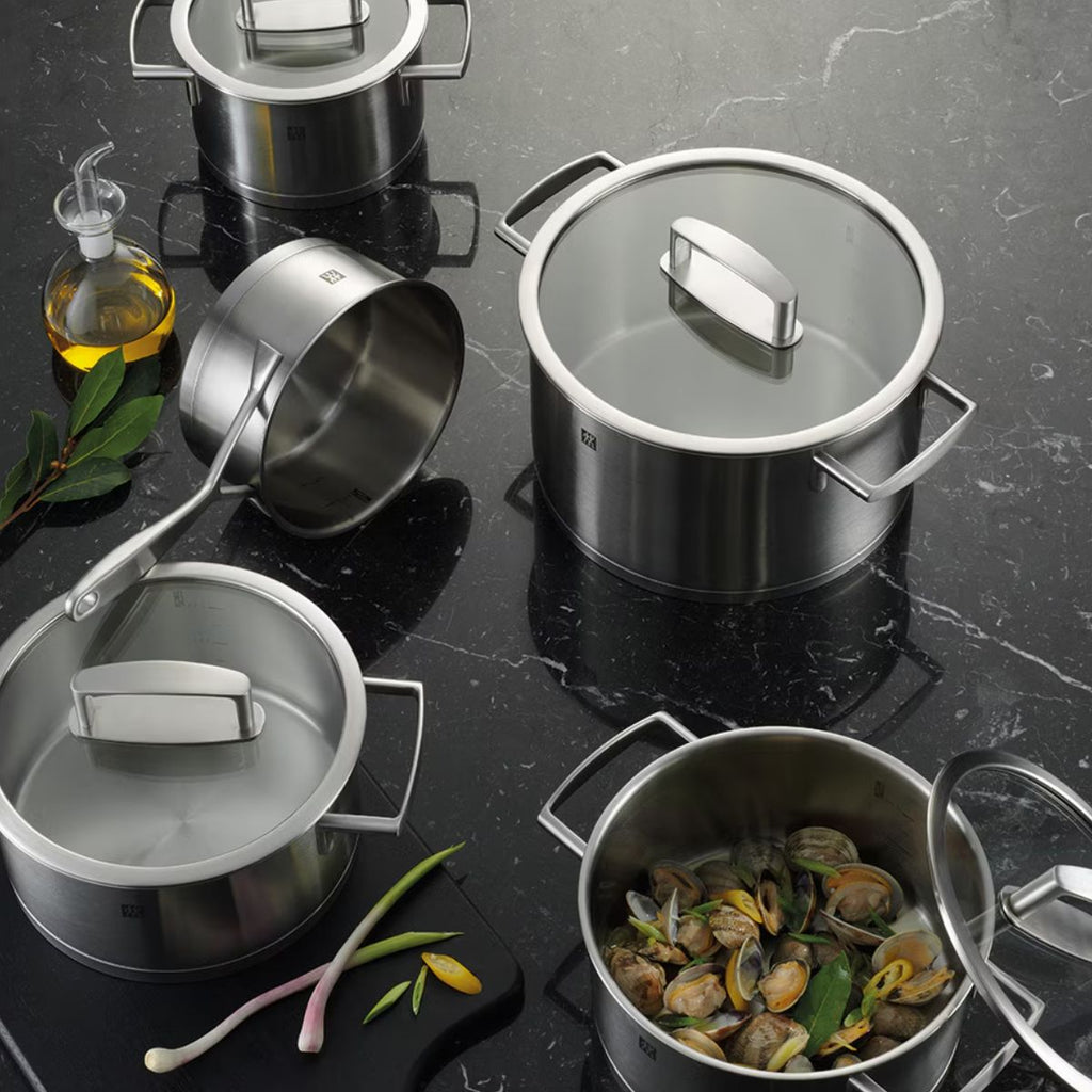 La batterie de cuisine Vitality de Zwilling comprend les 5 pièces suivantes, toutes avec graduation intérieure :