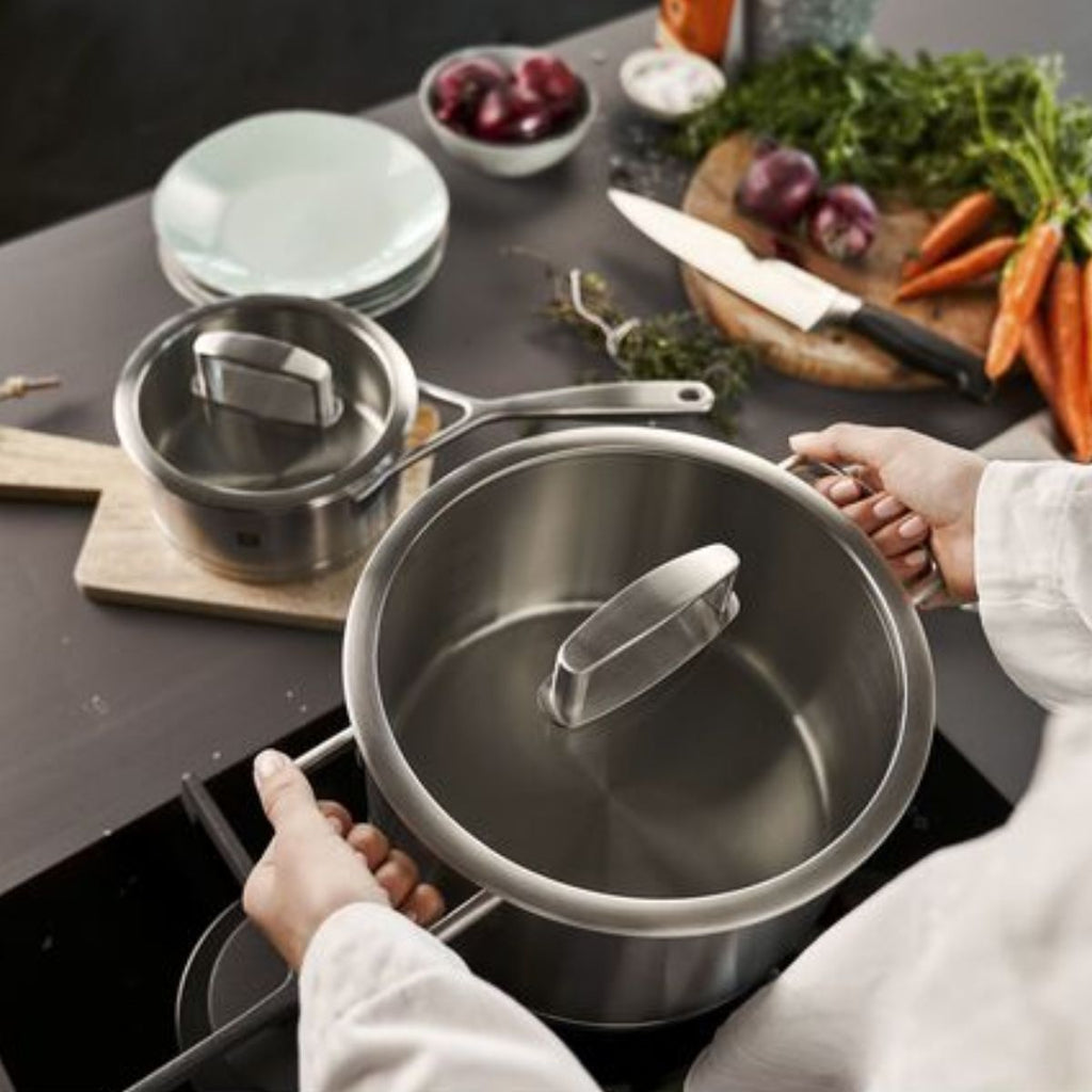 Toutes les pièces de la gamme Vitality de Zwilling bénéficient d’un fond triple couche avec technologie Sigma Classic, offrant une répartition et une conservation optimales de la chaleur, et garantissent une meilleure efficacité énergétique. Vous pouvez ainsi réduire le feu avant la fin de la cuisson pour économiser l’énergie. Et grâce à l’acier inoxydable, toutes les pièces — casseroles, cocotte ou faitout — vont aussi au four.
