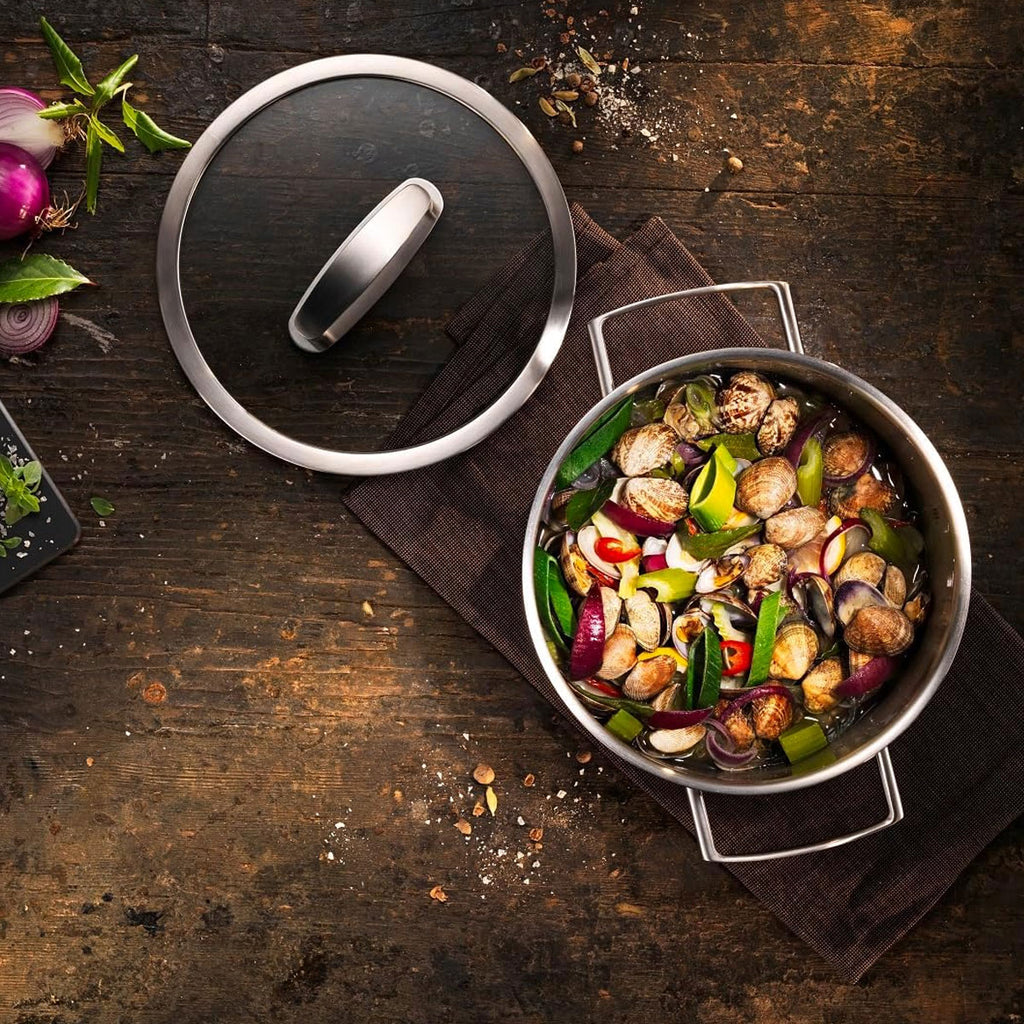 Les couvercles en verre s’ajustent parfaitement et permettent une cuisson à feu doux avec peu d’eau. Grâce à leur transparence, vous pouvez surveiller l’intérieur et maintenir chaleur et vapeur, pour des plats plus tendres et savoureux tout en réduisant la facture énergétique.