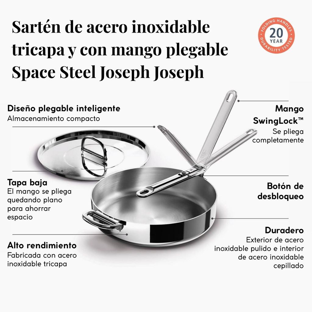 Ce qui distingue la Poêle en acier inoxydable avec manche pliable Space Steel Joseph Joseph