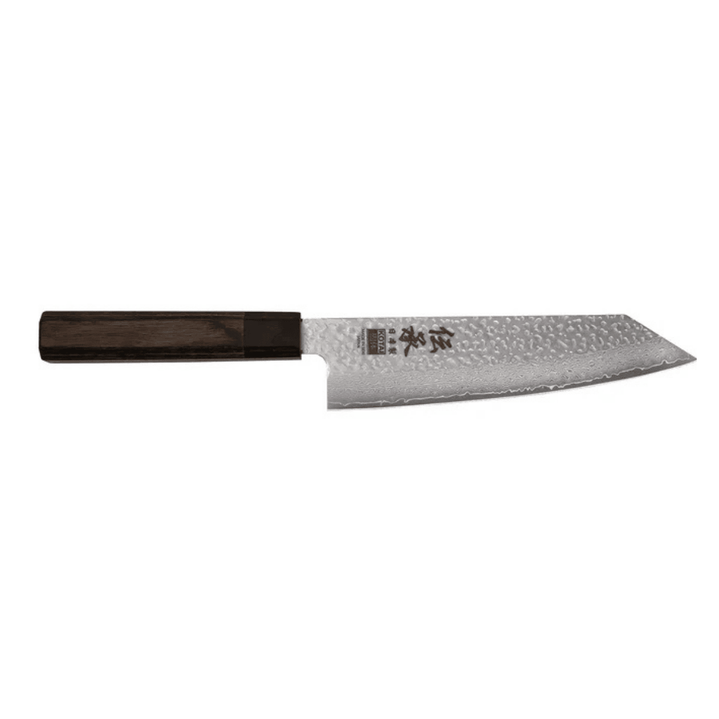 Fabriqués artisanalement à Seki, Japon, les Couteaux en acier damassé japonais Densho Kotai sont l'expression de l'héritage culinaire japonais. Leurs lames en acier damassé martelé de qualité excellente sont un véritable artisanat. Ils se distinguent par leur tranchant ultra-affûté, qui reste précis coupe après coupe, et par leur manche octogonal en bois de pakka noir, qui leur confère une grande élégance et rend leur prise en main très confortable et sûre. Des couteaux uniques, d'une grande beauté et en production limitée, qui ne peuvent manquer dans votre cuisine.