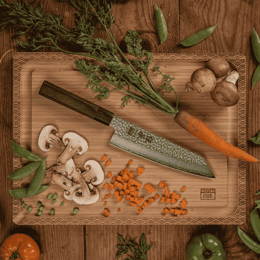 Légers, précis et affûtés comme les couteaux japonais, et aussi durables, inoxydables et faciles à entretenir que les couteaux allemands, les couteaux KOTAI sont l'équilibre parfait entre les couteaux japonais et allemands, réunissant les meilleures qualités des deux mondes.