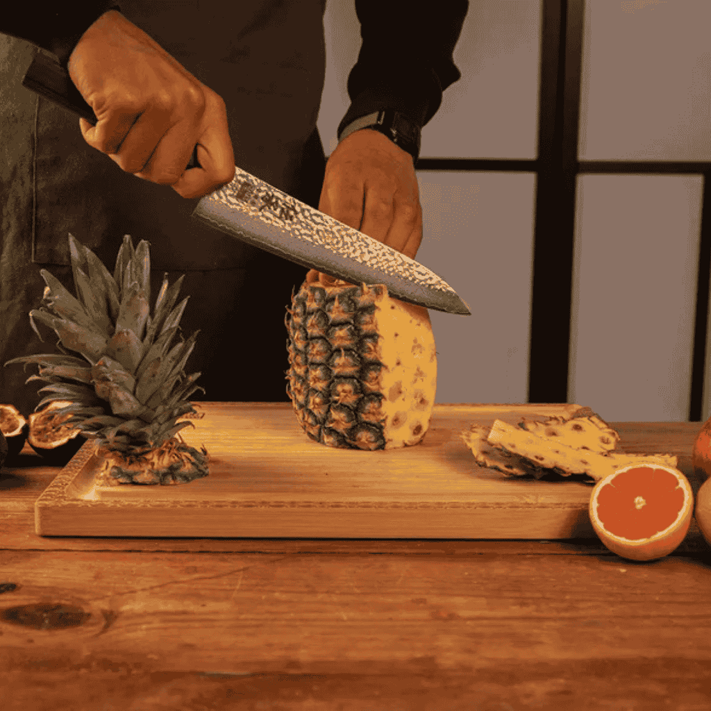 Leurs lames en damassé martelé sont faites de acier inoxydable japonais VG-10 de la plus haute qualité et sont élaborées à la main de manière méticuleuse par des couteliers experts. Leur teneur en carbone donne une lame avec une durabilité et résistance accrues, et un tranchant ultra-affûté qui se maintient plus longtemps.