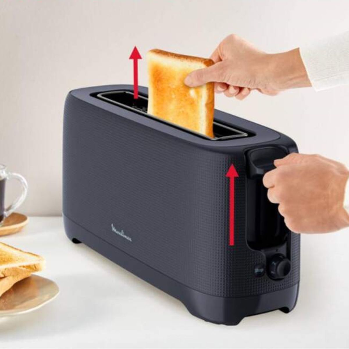 Une autre caractéristique du grille-pain Morning Moulinex qui va sûrement vous plaire est qu’il dispose d’un levier d’extraction offrant une grande élévation et permettant de retirer confortablement les petites tranches sans se brûler.