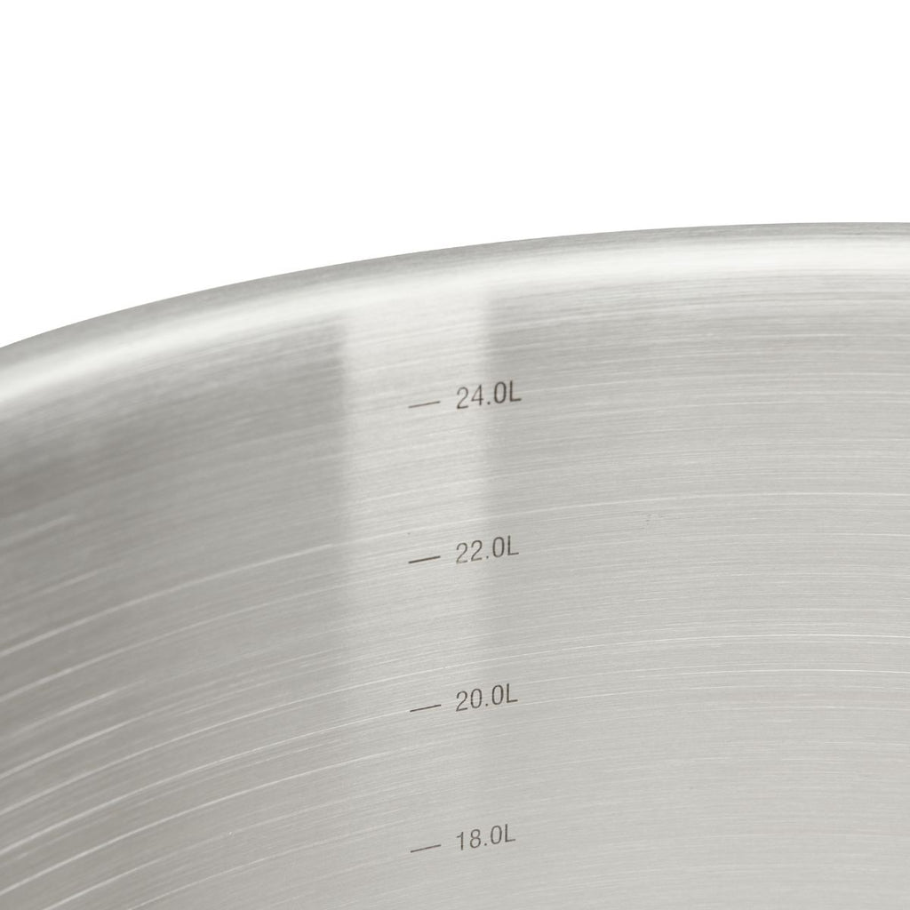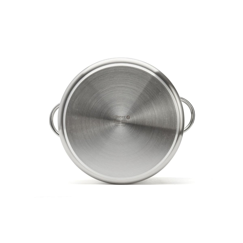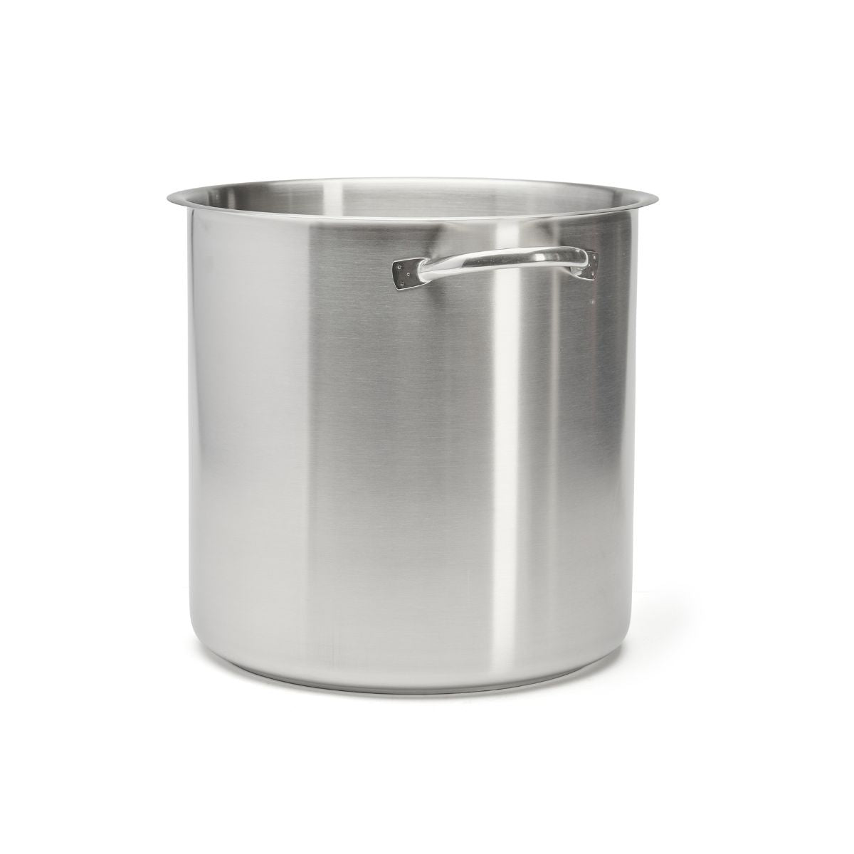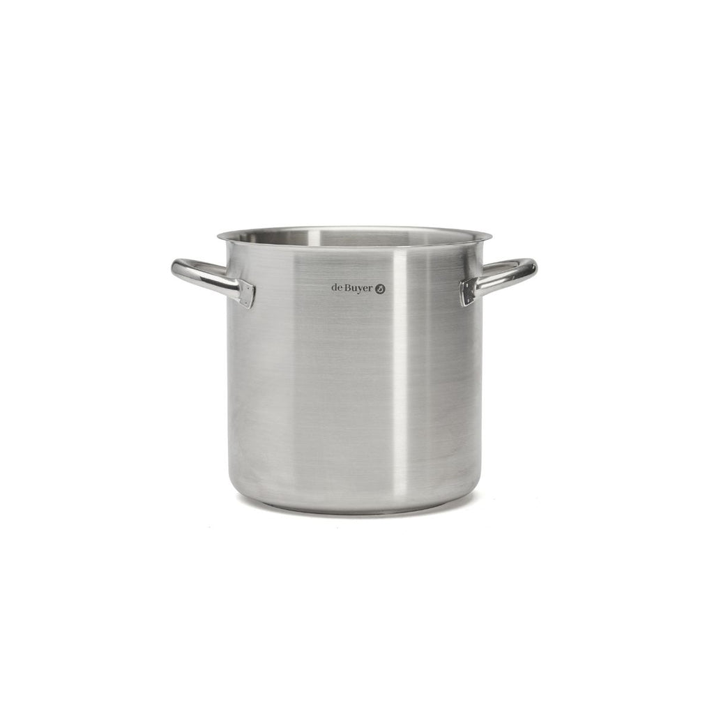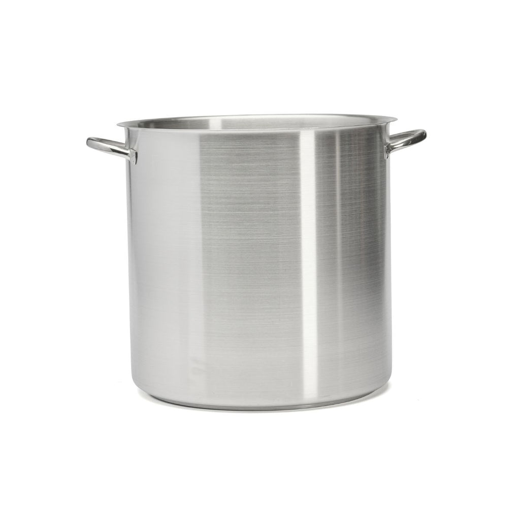 Olla alta de acero inoxidable 18/10 con acabado satinado y base difusora del calor, apta para todas las cocinas incluida la inducción.
