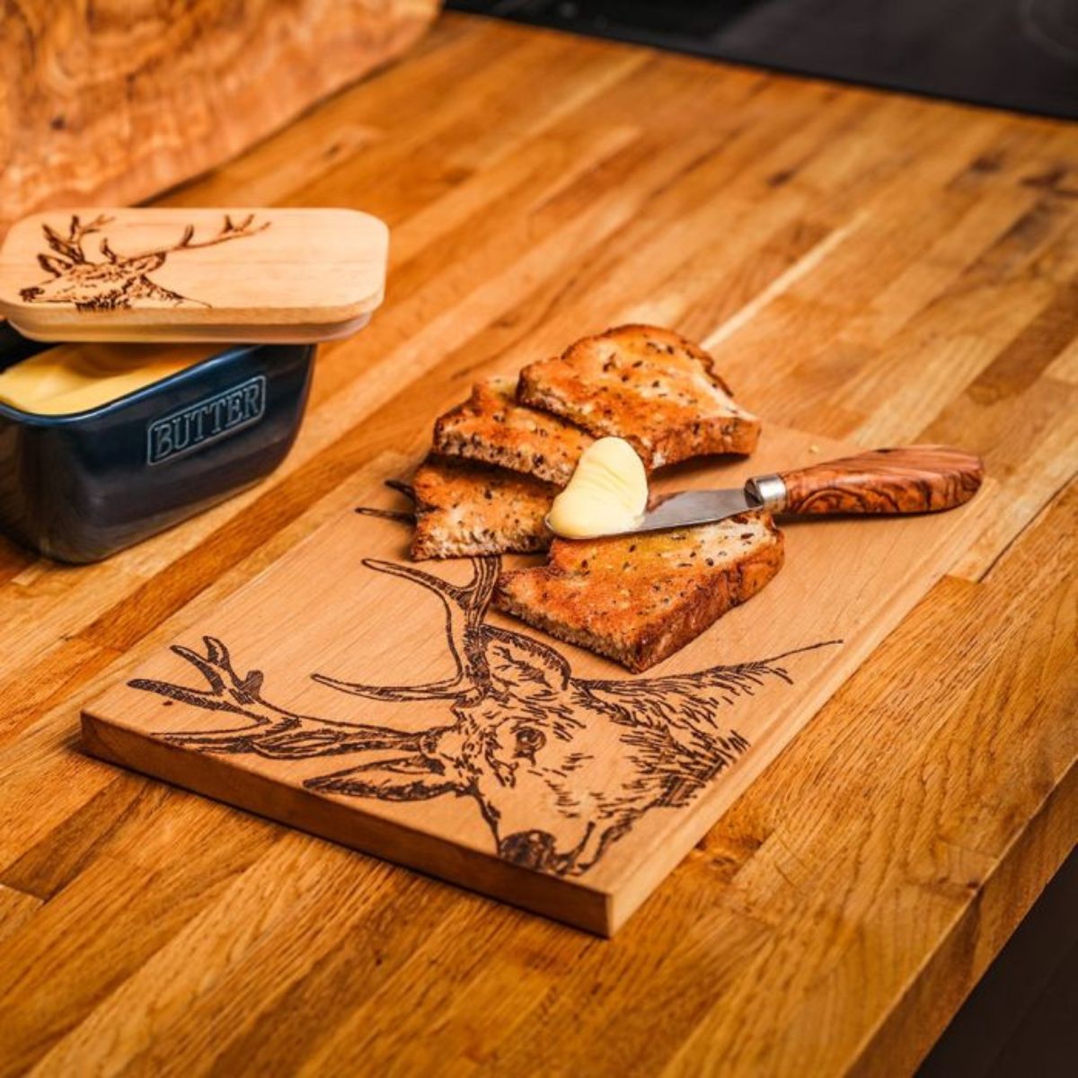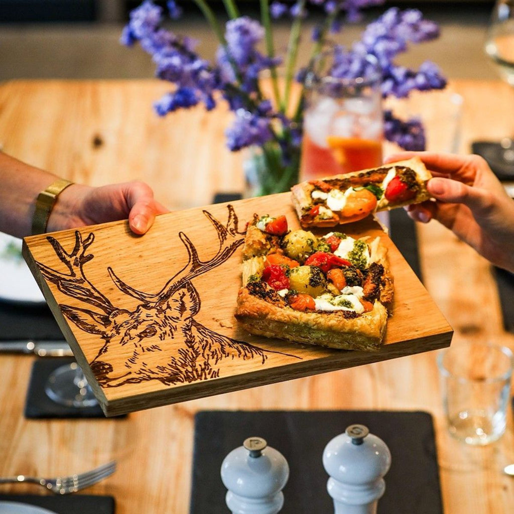 Fait main en Écosse, la Planche de service en chêne Selbrae est un plateau impressionnant en chêne britannique, d'origine durable et de culture locale, qui sera la pièce maîtresse de votre table. La planche présente un gravure charmante d'un animal. Chaque planche est une pièce artisanale, unique et inimitable, idéale comme plateau pour apporter à table et présenter fromages, charcuteries, entrées, desserts ou apéritifs variés. Une planche d'excellente qualité, aussi précieuse et originale que polyvalente.