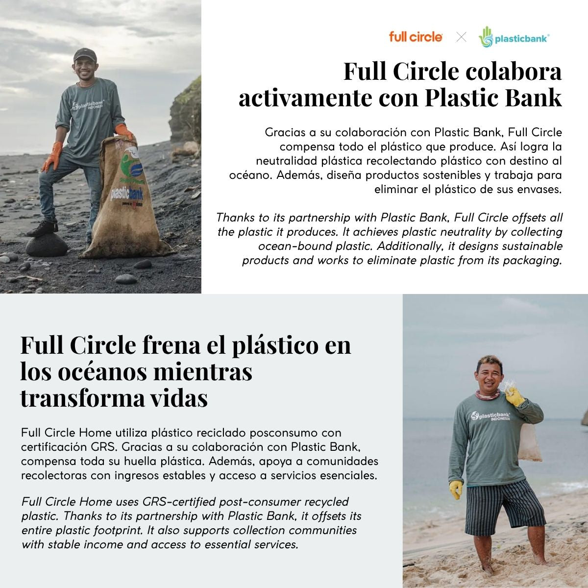 Les produits Full Circle sont fabriqués pour avoir une longue durée de vie, offrant une fonctionnalité maximale à tout moment à ceux qui les utilisent. Pour cette raison, la plupart d'entre eux disposent de recharges et de têtes de rechange afin d'éviter de devoir se débarrasser de l'ensemble du produit. Cela correspond parfaitement à la philosophie de la marque qui est de réduire au minimum les déchets que nous générons. Depuis New York, Full Circle apporte des solutions pour obtenir des maisons plus durables avec des produits beaux, innovants, originaux et qui aident à résoudre de nombreuses difficultés domestiques existantes dans la cuisine, la salle de bain et le nettoyage. Si vous souhaitez opter pour une maison plus durable, consciente et, en même temps, naturelle et biologique, les produits Full Circle sont exactement ce dont vous avez besoin.