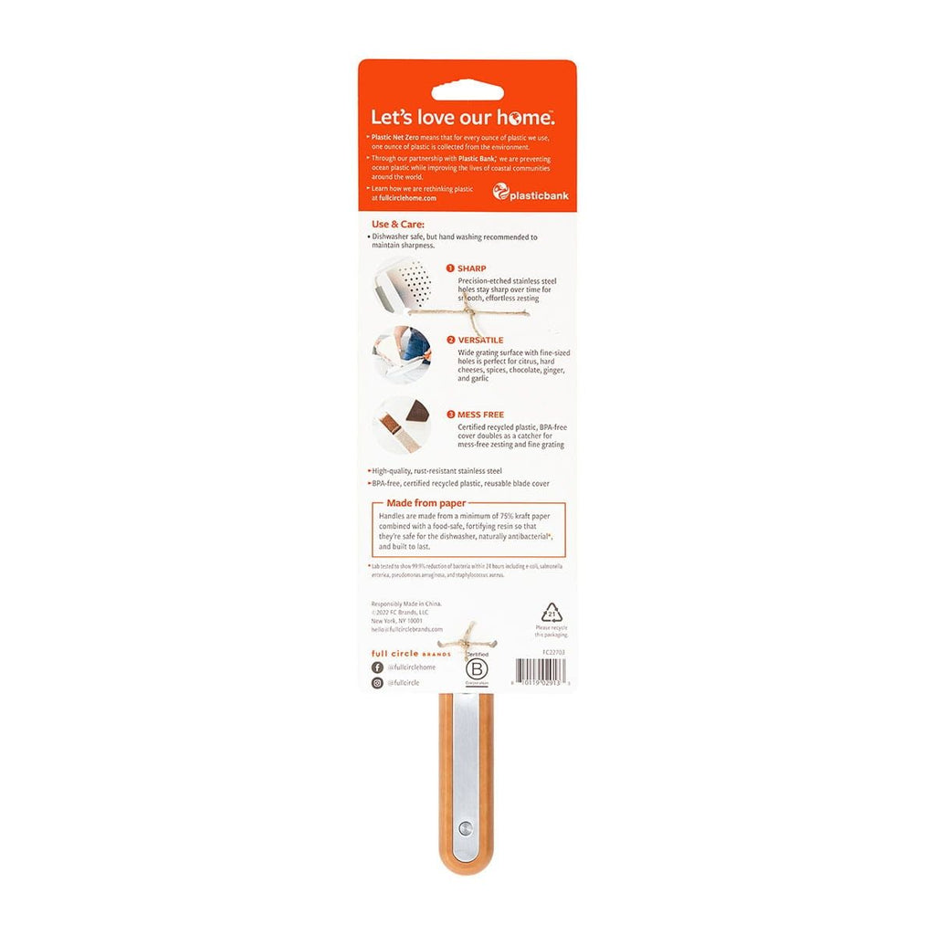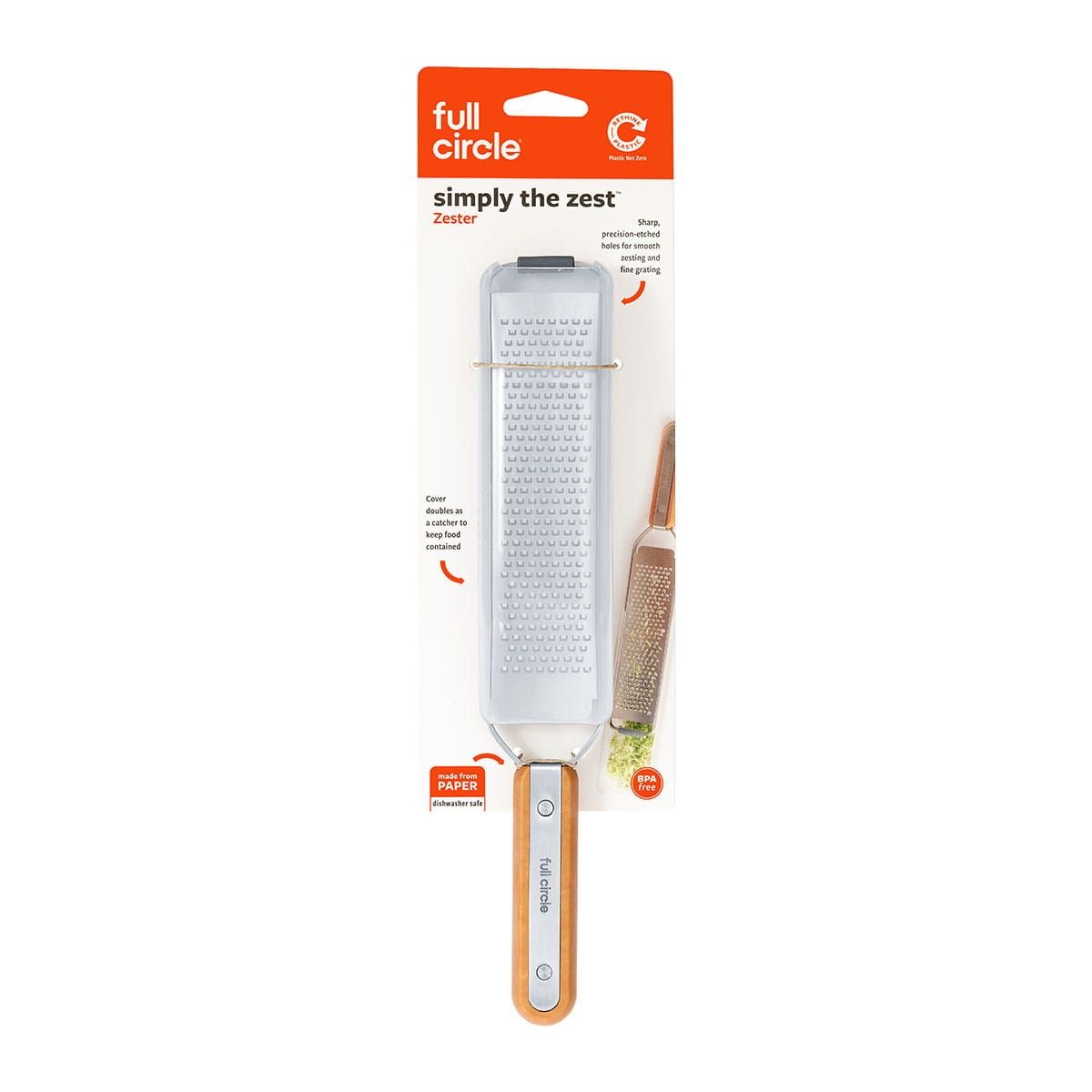La base en silicone à l’extrémité opposée du manche, fabriqué en papier kraft renforcé, permet de râper sans glisser. La râpe fine Simply The Zest Full Circle deviendra vite un indispensable dans votre cuisine, on vous le garantit.