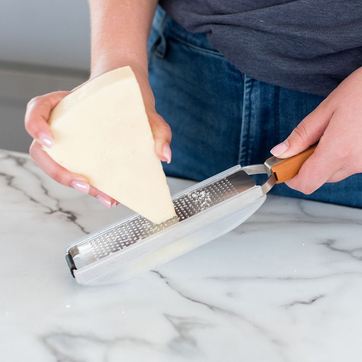 Fabriquée en acier inoxydable de haute qualité, cette râpe permet un résultat optimal sans effort grâce à ses trous affûtés. Sa large surface de râpage fait de la râpe fine Simply The Zest Full Circle un excellent allié pour râper fromages durs, ail, gingembre, épices et chocolat.