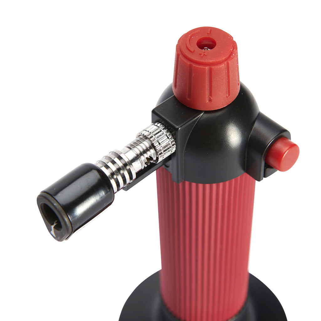 Ti basta riempire il serbatoio, girare la rotella per aprire il gas e premere il pulsante rosso: la fiamma si accende all’istante. Puoi inoltre regolare l’intensità della fiamma con la manopola superiore, in base alla preparazione.