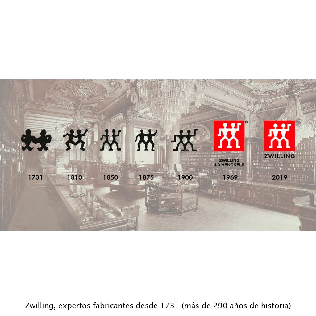 Zwilling è una delle marche più antiche d'Europa, fondata nel 1731 a Solingen, in Germania. Inizialmente riconosciuta per i suoi prodotti da taglio, la marca si è evoluta fino a diventare un leader globale nell'utensileria da cucina, con una presenza in oltre 100 paesi e un ampio catalogo che include utensili, pentole, padelle e piccoli elettrodomestici. L'esperienza di questo produttore tedesco si riflette in ciascuno dei suoi prodotti, che si distinguono per un design funzionale e una qualità di produzione di altissimo livello. La marca ha ricevuto numerosi premi per il suo design e la sua qualità.