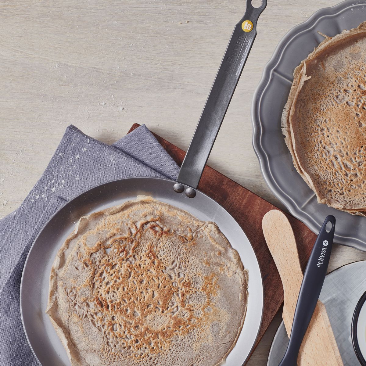 Più francese di Yves Saint-Laurent, la Crepiera Mineral B De Buyer è fantastica per cuocere succulente crêpe a casa, e un utensile fantastico da usare anche come grill o per arrostire la carne (grazie ai suoi bordi bassi e al suo materiale, che sigilla la carne rapidissimamente). Un gioiello tra le padelle in ferro Mineral B di De Buyer.