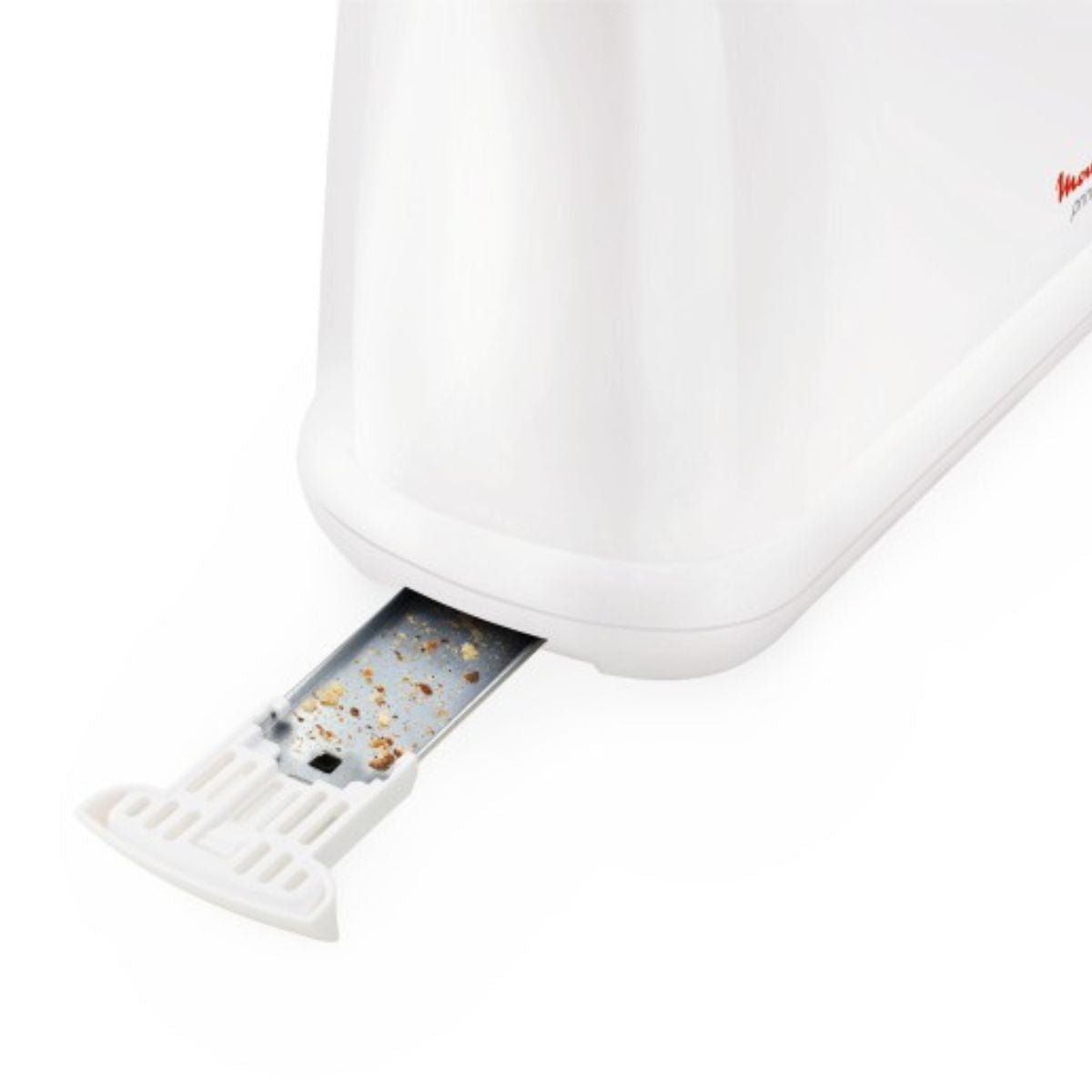 Se ti preoccupa come estrarre le fette di pane più piccole da questa fessura così grande, vale la pena dirti che il tostapane a 1 fessura Principio Moulinex dispone di una funzione di sollevamento per estrarre il pane senza difficoltà e senza scottarsi le dita.