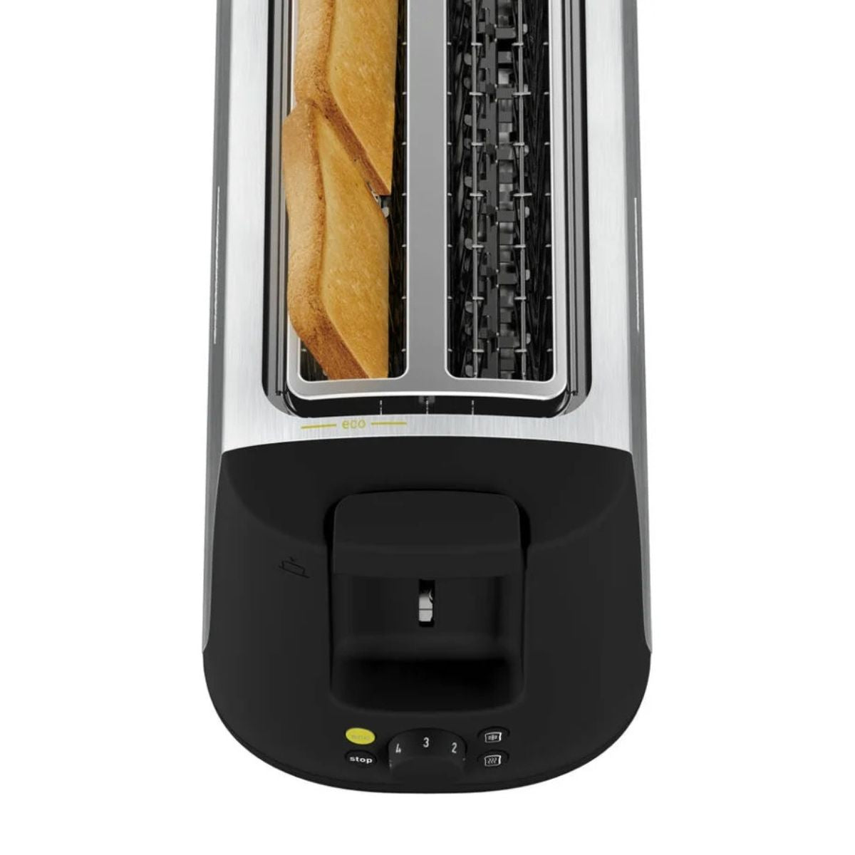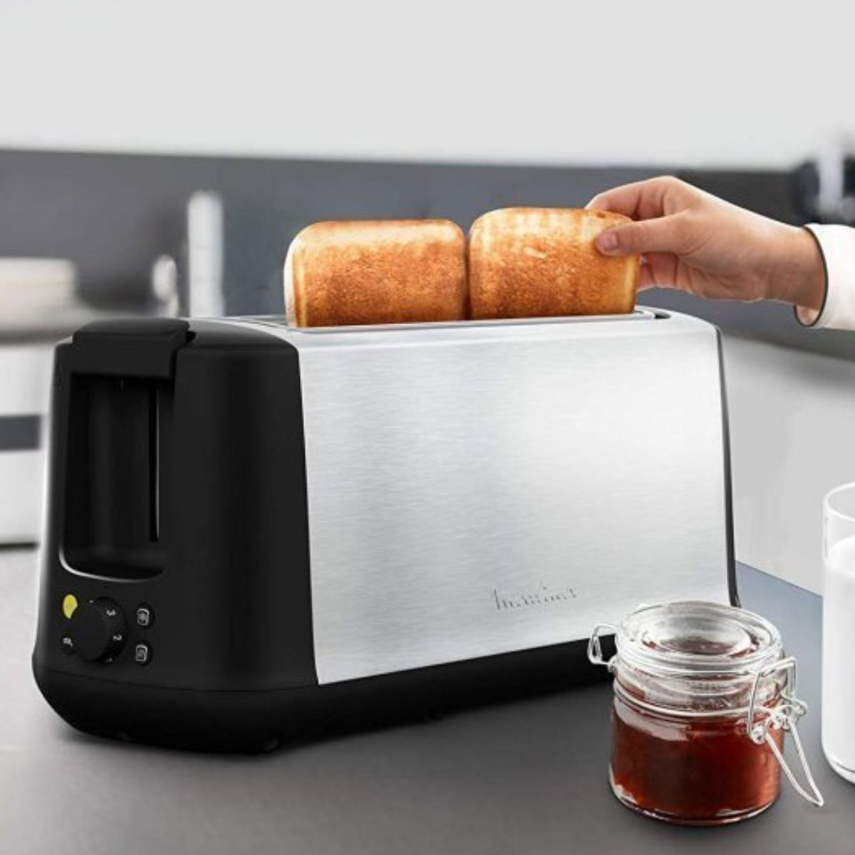 Un'altra caratteristica del Tostapane Subito Select Moulinex che ci piace molto è che se vuoi tostare una sola fetta di pane, dispone di una funzione ECO che attiva solo una delle fessure e consuma solo il 37% di energia. Cosa aspetti a prendere il Tostapane Subito Select Moulinex?