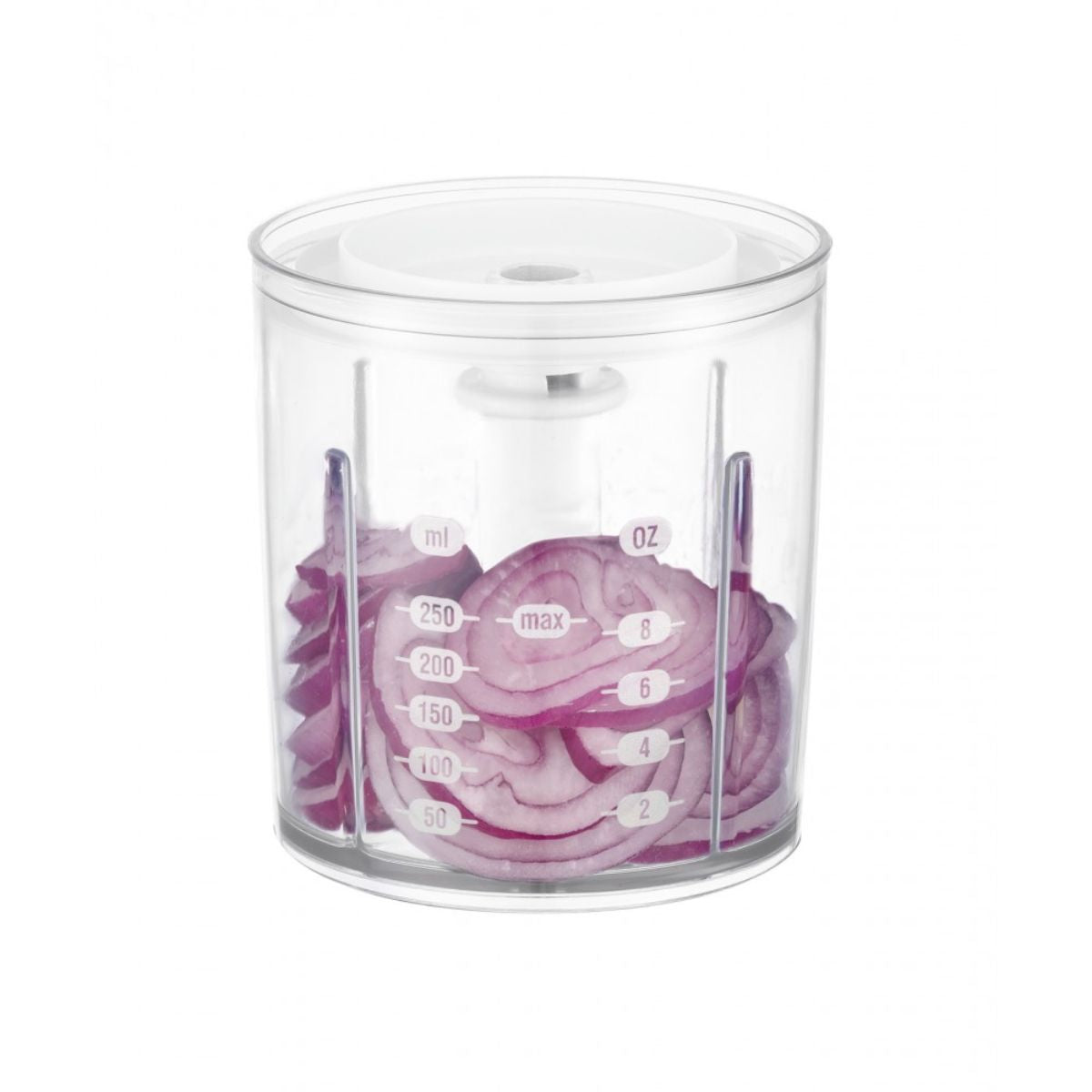Dopo averlo utilizzato, vedrai quanto è semplice smontarlo per poterlo pulire comodamente in lavastoviglie. Devi anche considerare che la base del tritatutto ha una doppia funzione: se vuoi può diventare un coperchio e così puoi conservare comodamente gli alimenti o gli ingredienti tritati in frigorifero.