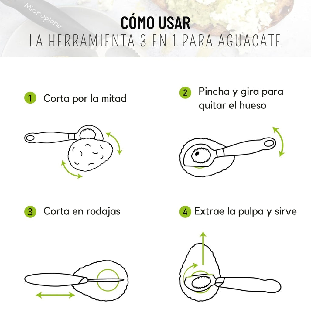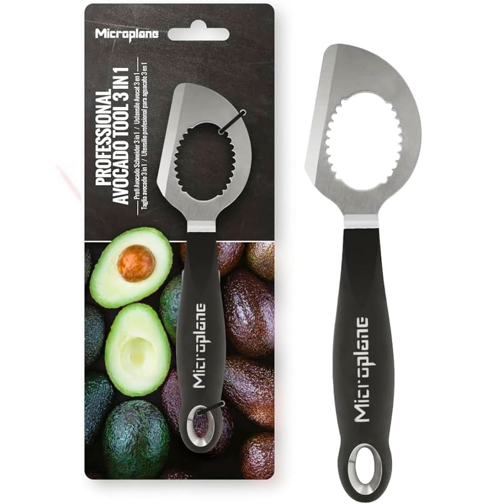 Con il Utensile 3 in 1 per avocado Microplane scoprirai quanto è facile aprire, sbucciare, snocciolare, affettare e rimuovere la polpa dell’avocado, senza cambiare strumento. Il nuovo coltello per avocado Microplane è un utensile multifunzione, pensato nei minimi dettagli per rendere felici gli amanti dell’avocado. Con la grande qualità del leader indiscusso dei tagliatori, Microplane!