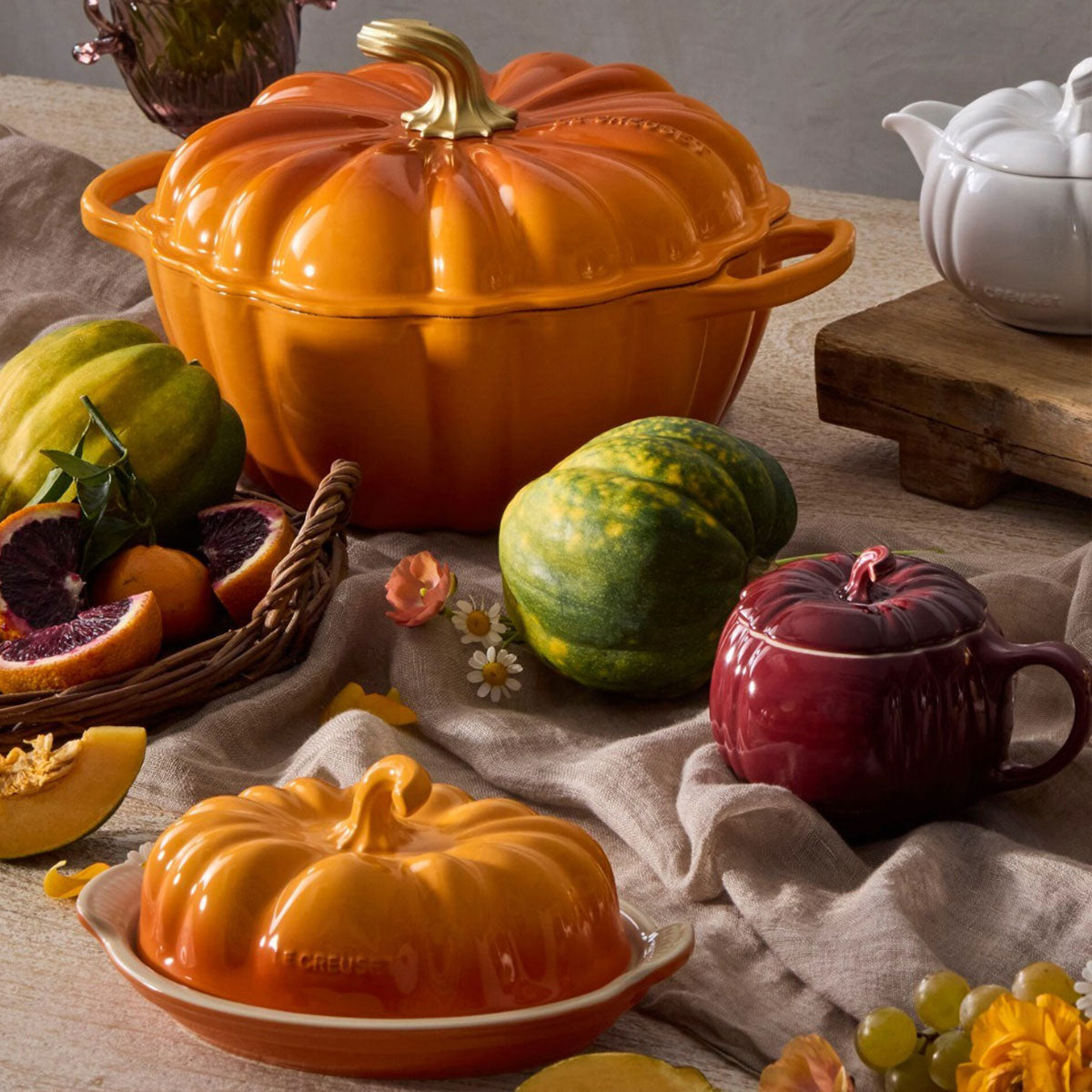 La incantevole burriera Zucca in gres ceramico, con cui Le Creuset amplia la sua collezione più autunnale, non può mancare tra le tue preferite. È un pezzo prezioso e un'opzione ideale per conservare il burro o i formaggi e presentarli in tavola per sorprendere i tuoi ospiti.