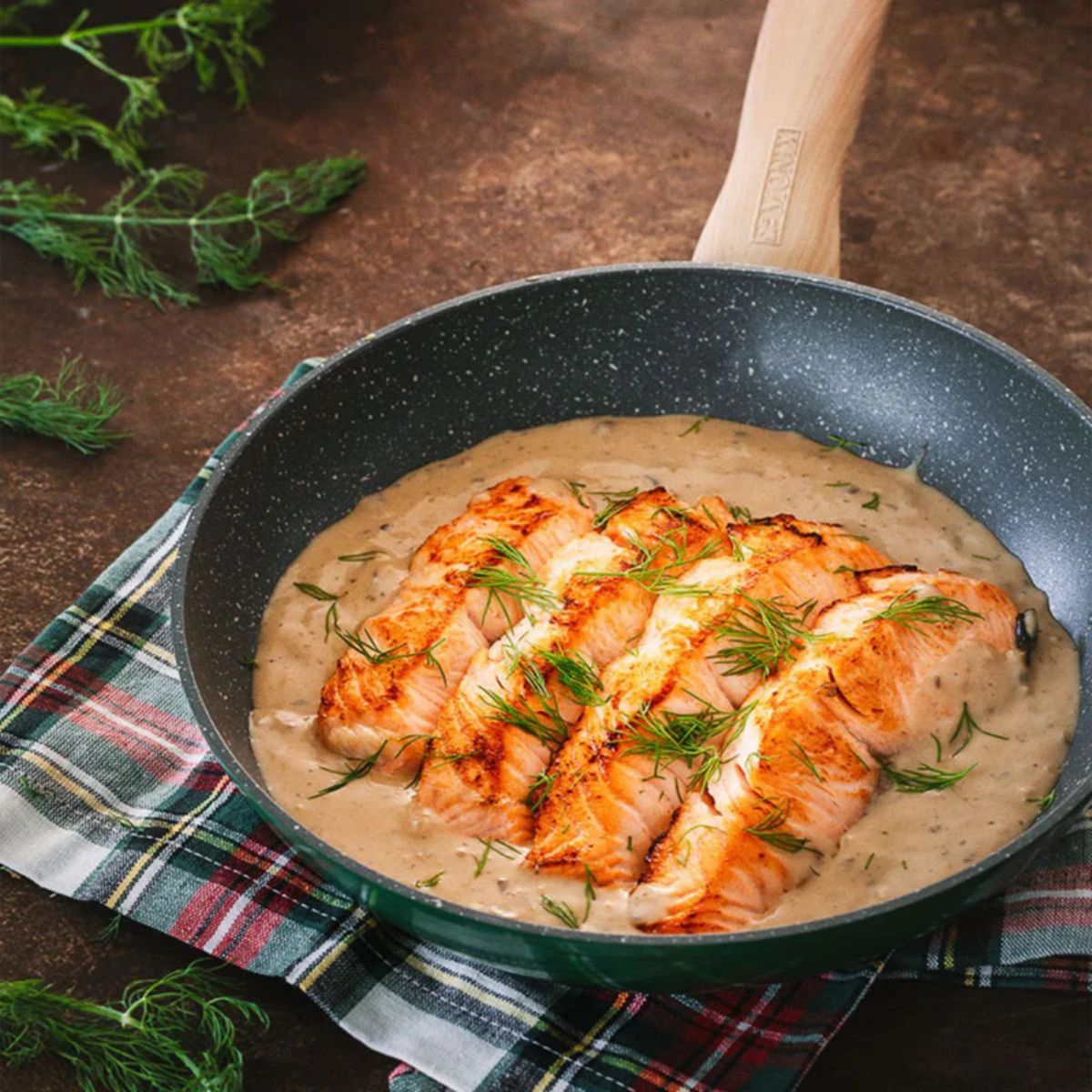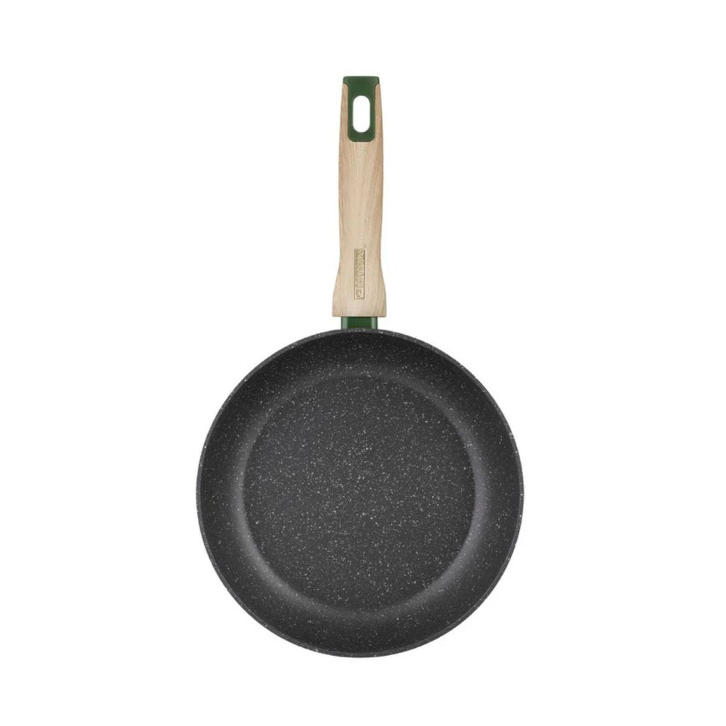 Il set include 3 padelle ideali per l’uso quotidiano, da 18, 22 e 26 cm. Preparati a saltare, friggere, rosolare, grigliare o cucinare piatti con salsa come un professionista, con rapidità, comodità ed efficienza, e con risultati eccellenti. Grazie ai loro manici in bachelite termo-isolanti con rivestimento soft-touch, l’impugnatura è sicura e confortevole. Con la finitura effetto legno, aggiungeranno un tocco di eleganza naturale alla tua cucina.