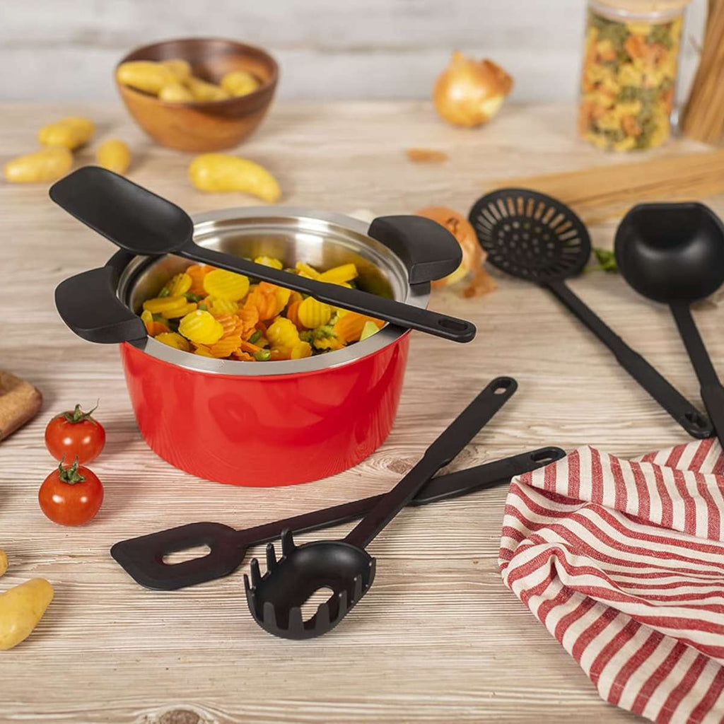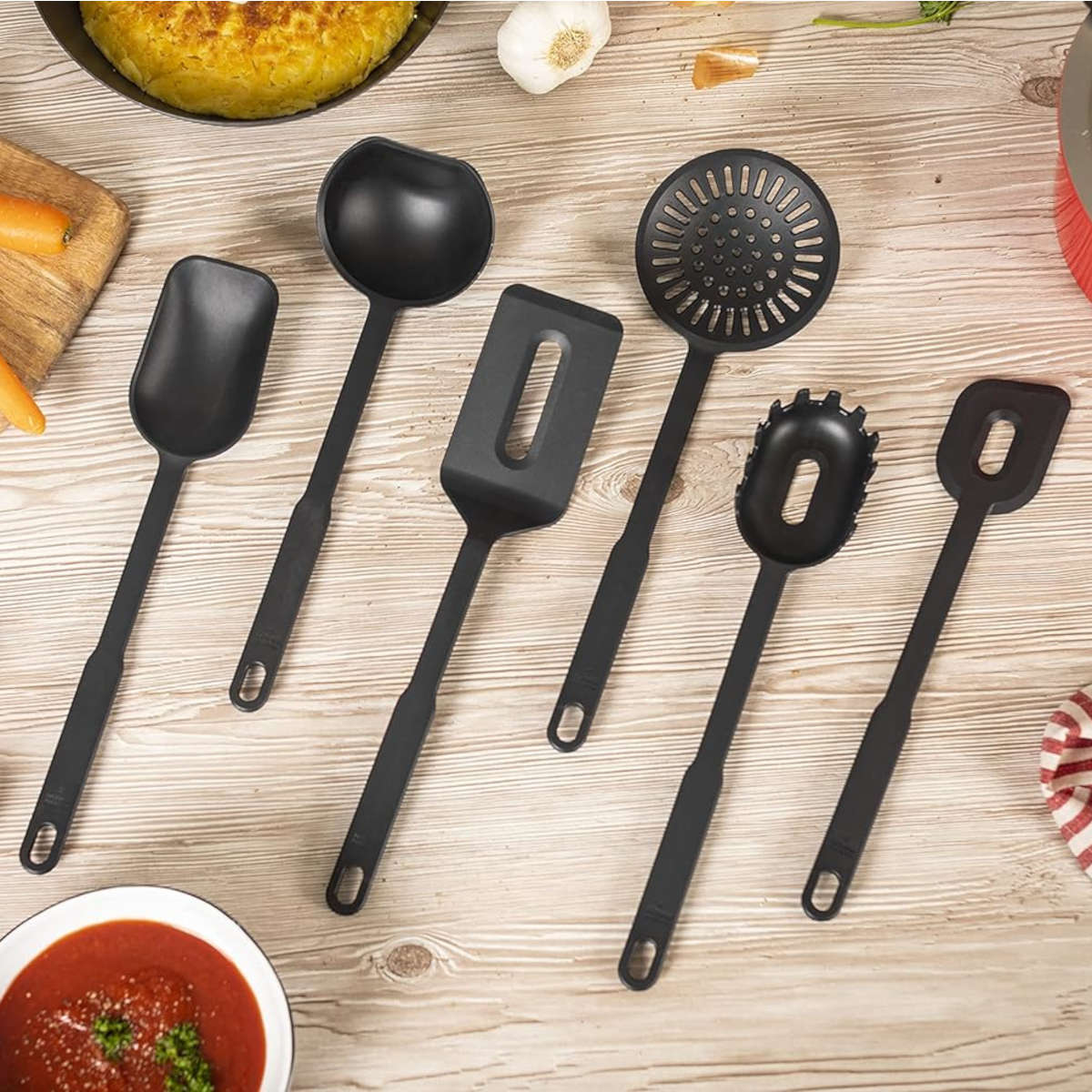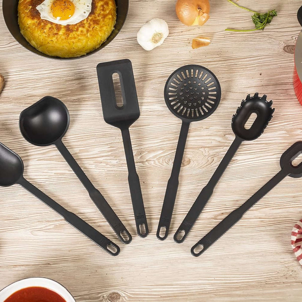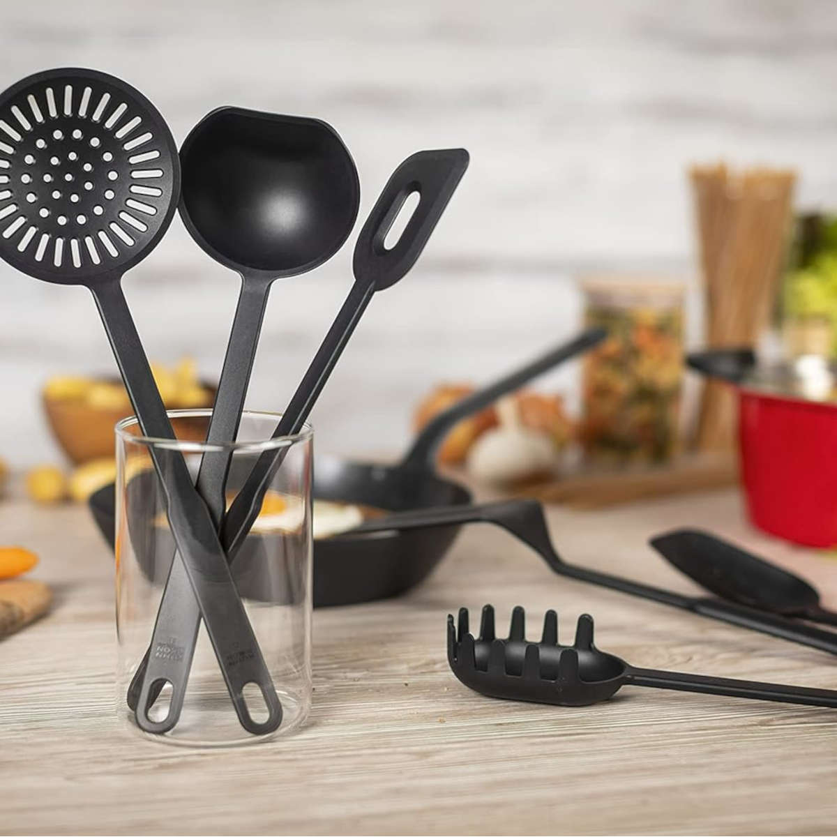 Se vuoi prenderti cura delle tue padelle antiaderenti e in ceramica, la Spatola per padelle antiaderenti Swiss Kuhn Rikon è la soluzione ideale. Questa paletta scanalata in nylon, prodotta in Svizzera, è perfetta per mescolare, girare e servire i cibi cotti in padelle, pentole, casseruole, griglie o teglie delicate, senza danneggiare il rivestimento e permettendo di scolare olio e succhi. Il suo manico ergonomico offre una presa molto comoda. È resistente e supporta alte temperature, oltre a essere facile da pulire. Ha tutto!