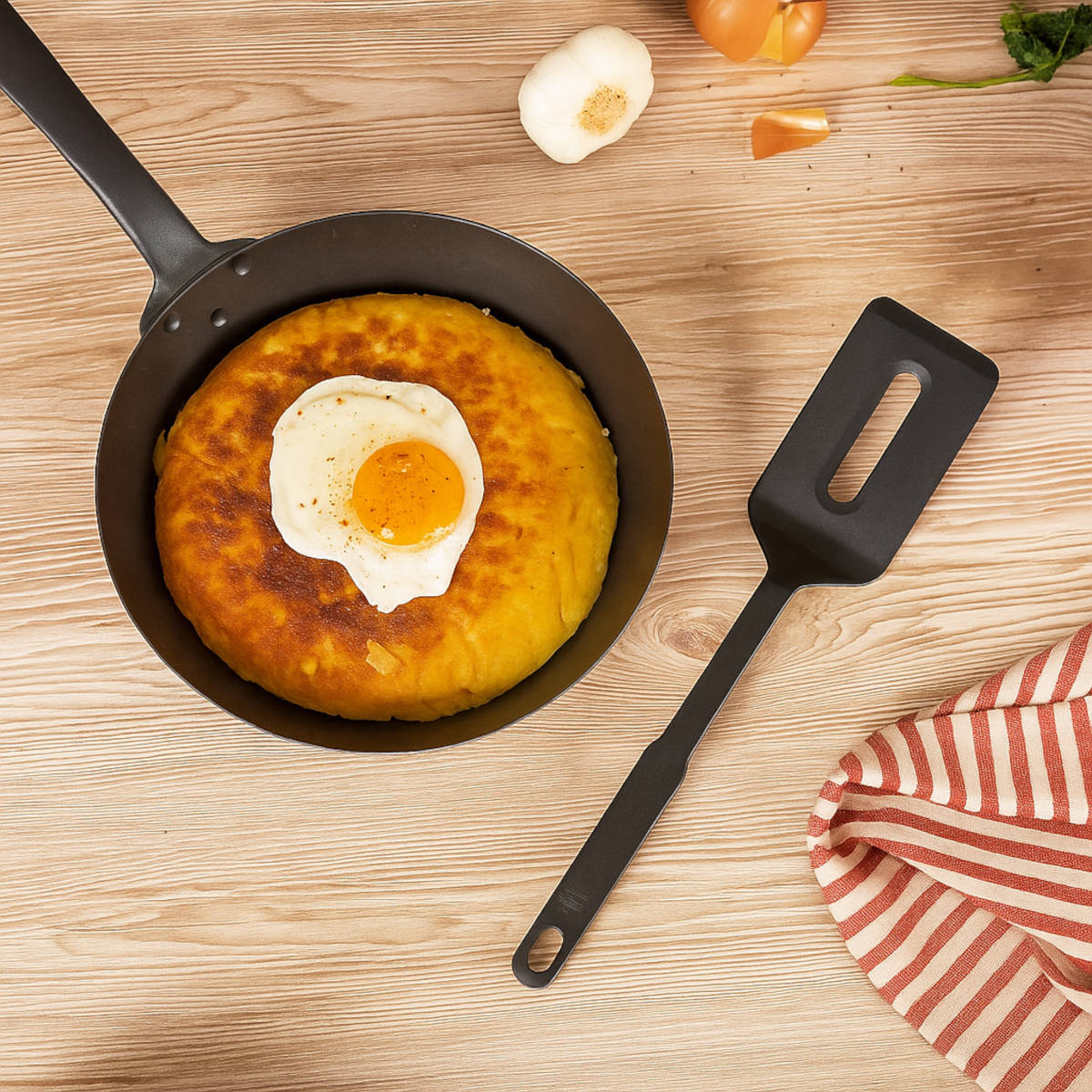 Prodotta in Svizzera secondo i più elevati standard di qualità, la spatola presenta un design minimalista, classico e senza tempo. È leggera e può essere utilizzata con tutti i tuoi utensili, perfino per servire una fetta di torta o un pezzo di brownie. È dotata di una scanalatura centrale, perfetta per scolare olio in eccesso e succhi di cottura durante il servizio di qualsiasi pietanza.
