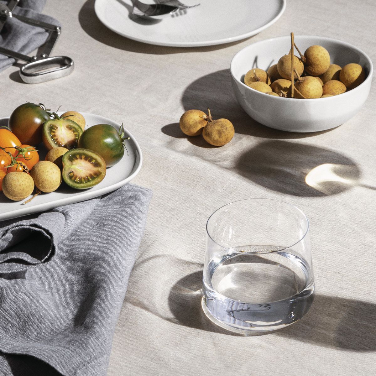 Partiendo de la forma de esta botella, Fukusawa diseñó los vasos Eugenia, que destacan por su diseño minimalista y esencial, con una línea distintiva que se repite en el borde y en el perfil de cada vaso: el ángulo obtuso. Este diseño los hace muy cómodos de sujetar y también al beber, y les confiere mucho carácter. Perfectos para vestir tu mesa en las mejores ocasiones, son también ideales para su uso diario.