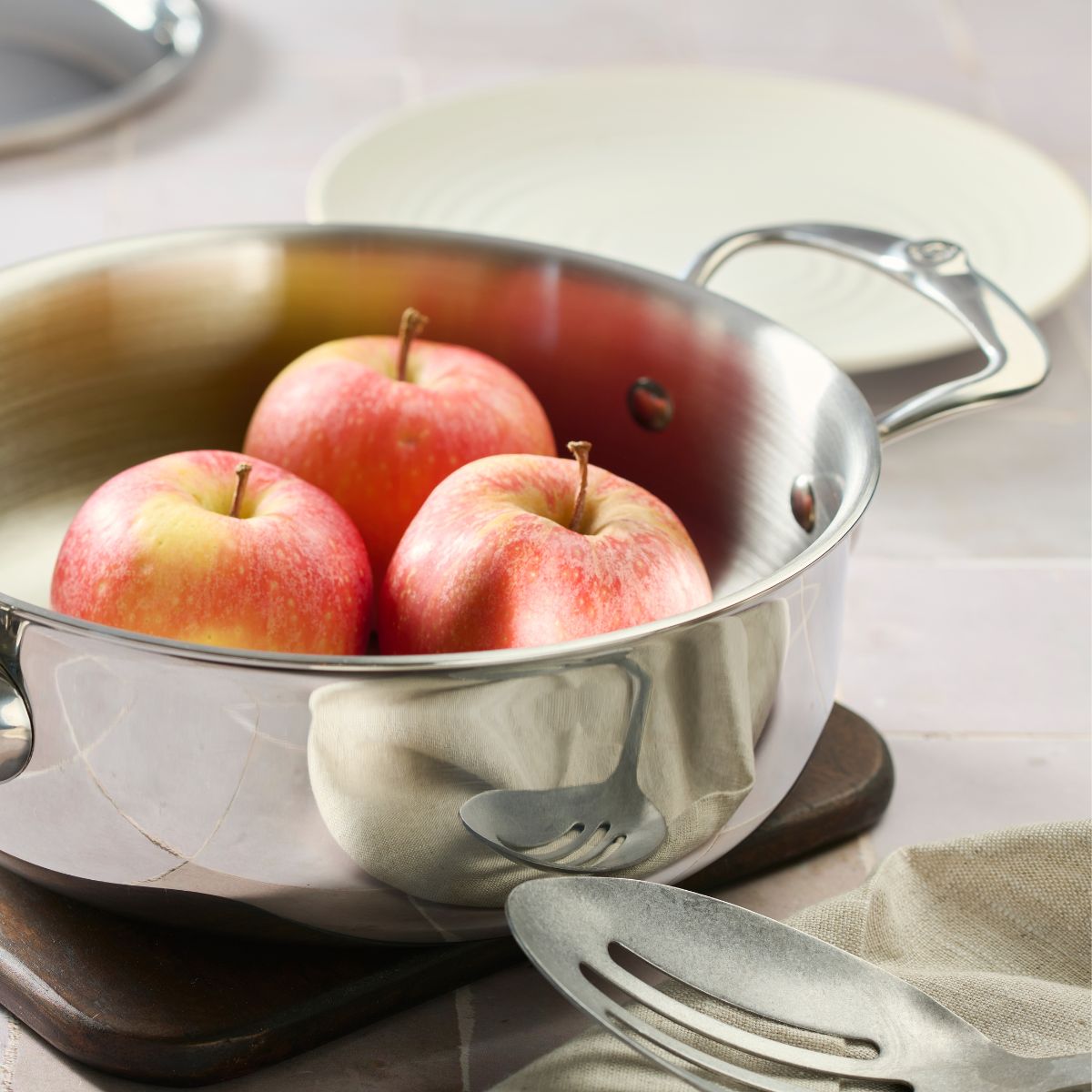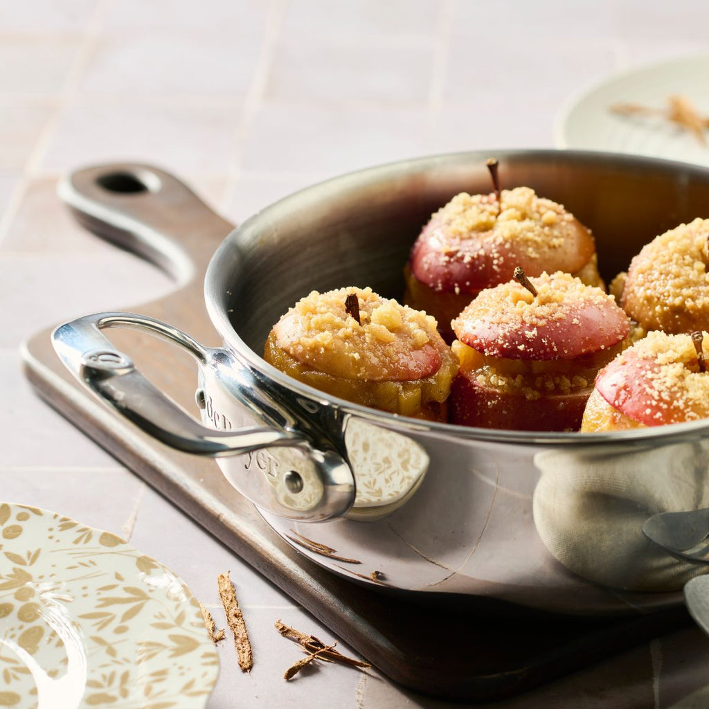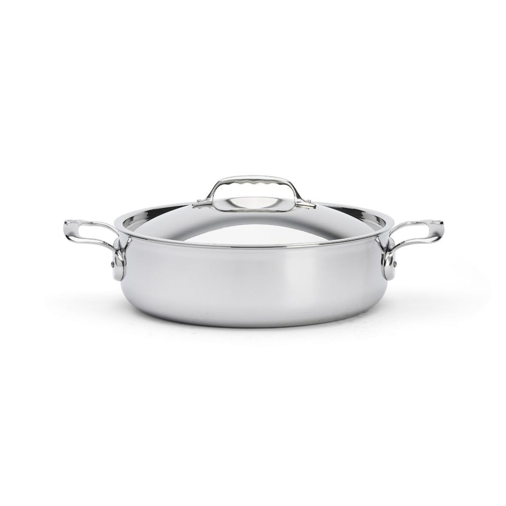 La Casseruola bassa in acciaio inox Affinity di De Buyer è realizzata con 5 strati di acciaio inossidabile e alluminio sia nella base che nelle pareti, quindi assorbe e distribuisce il calore magnificamente grazie a questa tecnologia multistrato, il che si traduce in una cottura degli alimenti omogenea ed efficace.