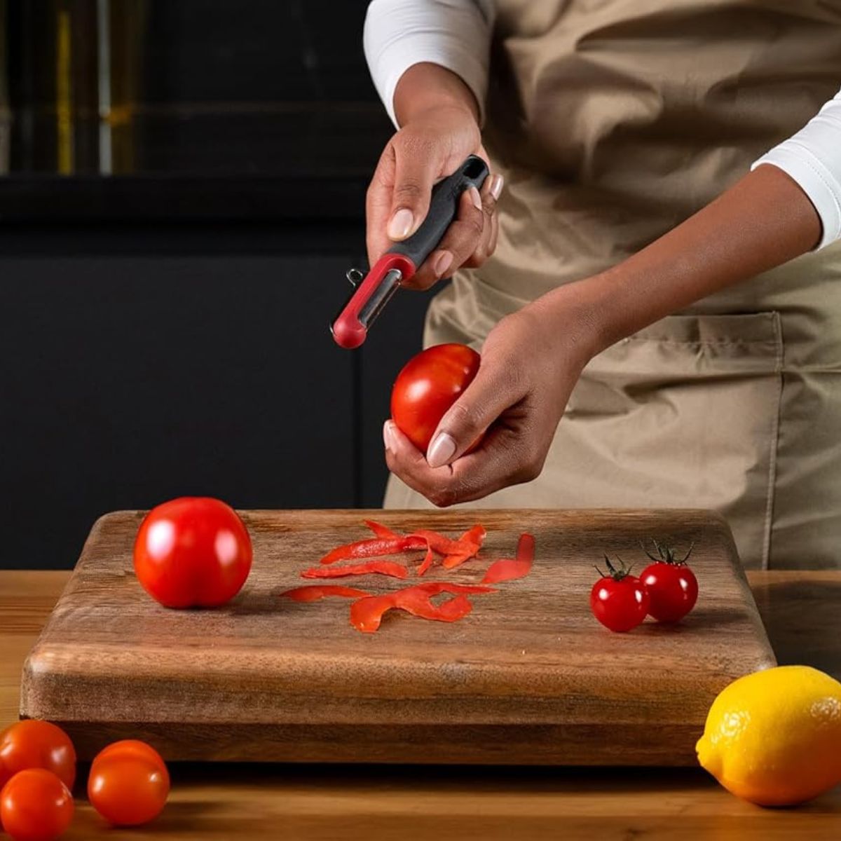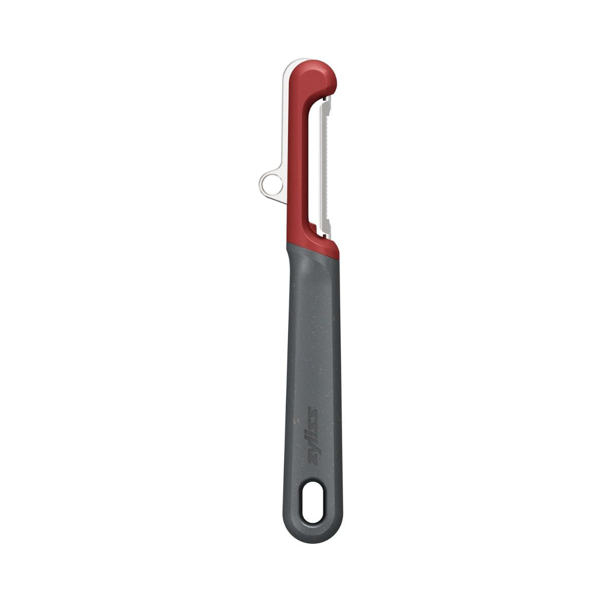 Si buscas un pelador para pelar los tomates o los kiwis, el Pelador pendular para pieles finas Zyliss es una herramienta ideal. Su diseño ergonómico hace que su manejo sea muy cómodo y sin apenas esfuerzo. El pelador cuenta con una cuchilla microdentada ultra afilada de inox que está diseñada para pelar de forma muy sencilla las frutas y verduras de pieles más finas, como las peras, los kiwis o los tomates.