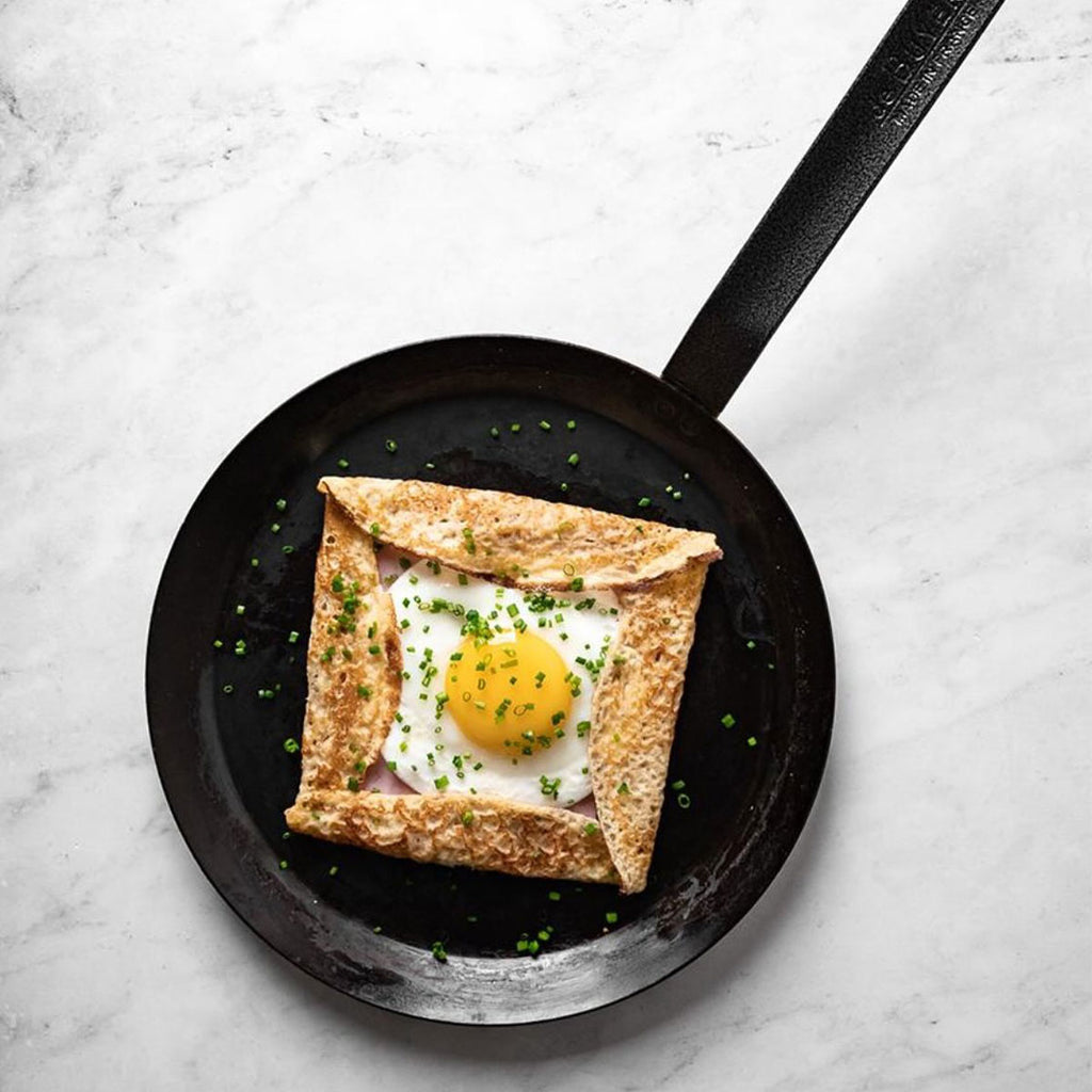 Más francesa que Yves Saint-Laurent, la crepera Mineral B De Buyer es fantástica para cocinar suculentas crêpes en casa, y un utensilio genial para usar también de parrilla o para asar carne (gracias a sus laterales bajos y a su material, que sella las carnes rapidísimamente). Una joya entre las sartenes de hierro Mineral B de De Buyer.