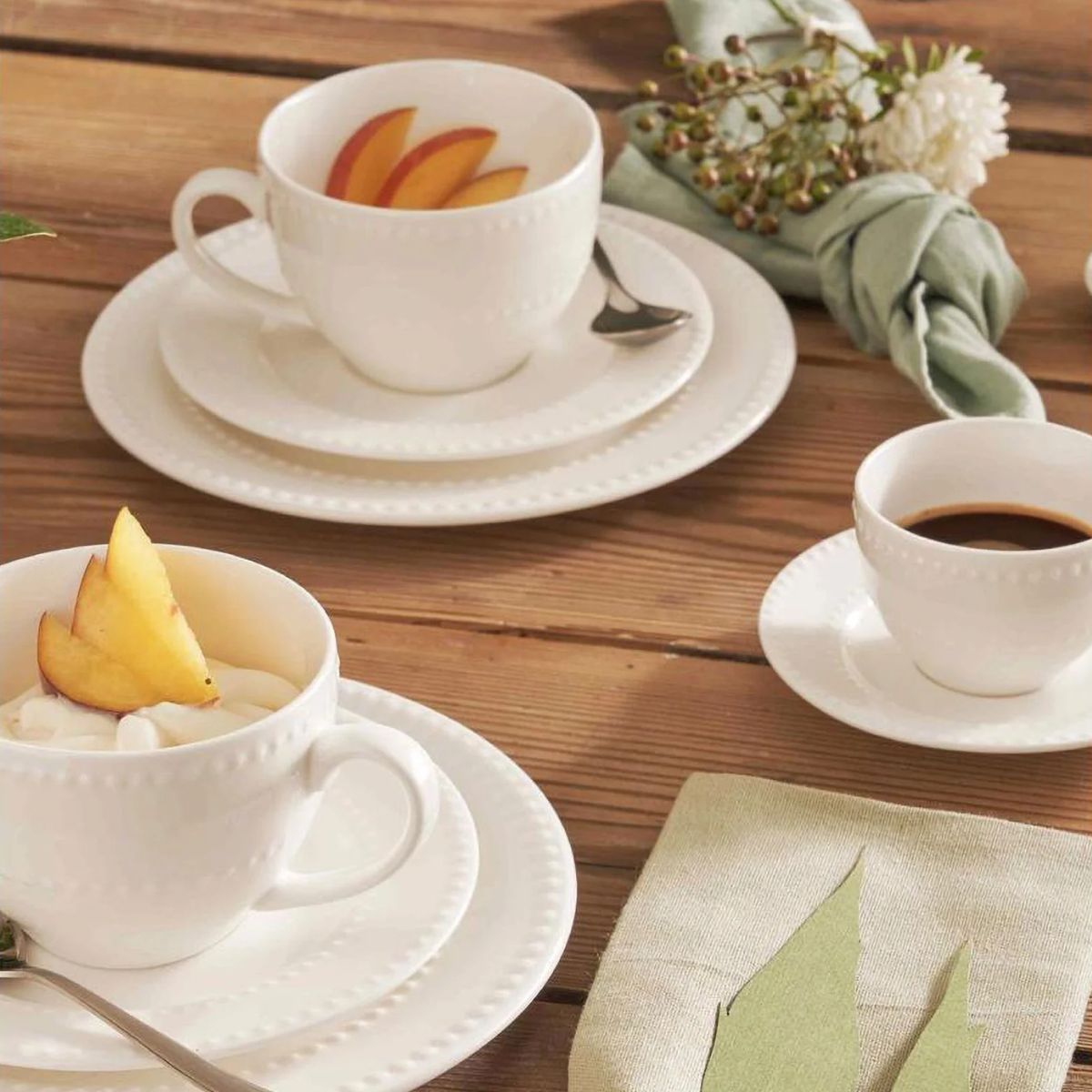 O Set de chávena com prato de Porcelana Collina La Porcellana Bianca é o conjunto perfeito para os teus pequenos-almoços. Com este precioso conjunto de prato e chávena de 350 ml, poderás desfrutar de um bom café com leite, de um chá aromático ou de um chocolate quente ao lanche. Fabricados em Porcelana, tanto o prato como a chávena são duradouros e têm um aspeto liso e brilhante, que se manterá impecável por muito que os uses.