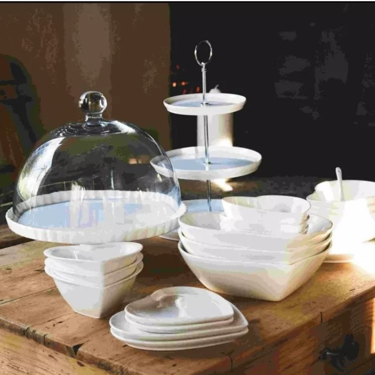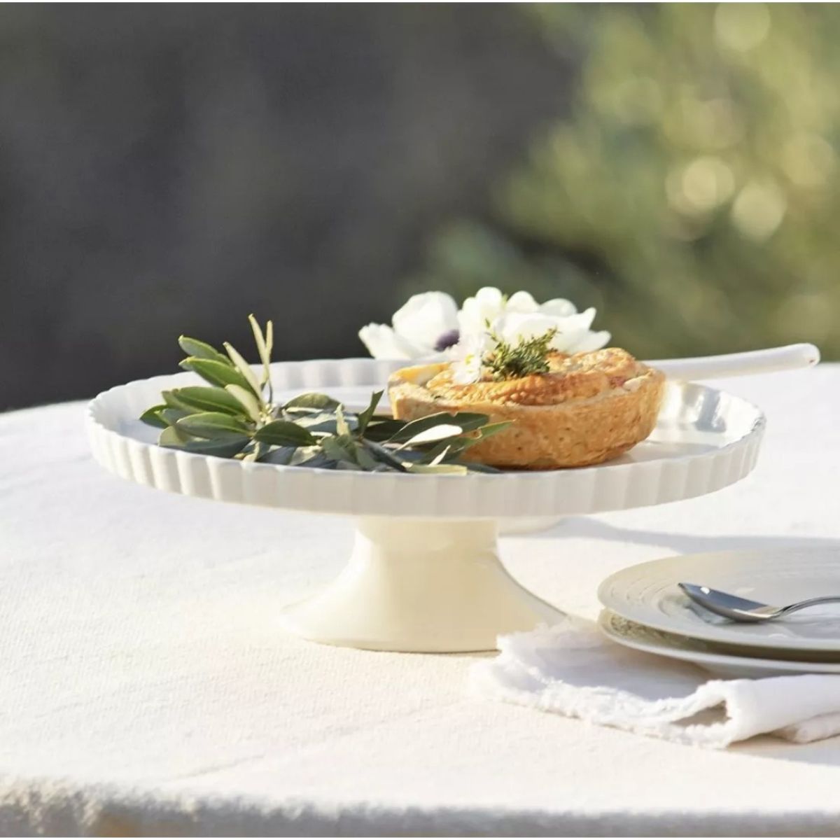 Com o seu precioso rebordo canelado e fabricado em Porcelana branca de alta qualidade, o Suporte para bolos em Porcelana Arezzo La Porcellana Bianca vai destacar-se com grande elegância no centro da sua mesa, realçando a apresentação dos seus bolos e tartes. Este suporte redondo fica à vista de todos, graças ao seu pé que o eleva ao mesmo tempo que liberta espaço na mesa, para que possa colocar outros pratos ou tabuleiros.
