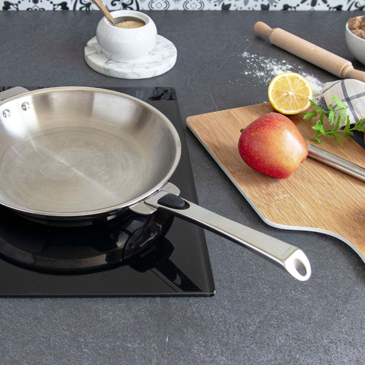 O mecanismo interior é em aço inoxidável em todos os cabos e pegas amovíveis, sejam de madeira, de inox ou de baquelite. Vais ver como é fácil colocá-los e retirá-los, o quão seguro e cómodo é manusear as tuas panelas, caçarolas e frigideiras e o quão prático é ao guardar os teus utensílios quando não os usares.
